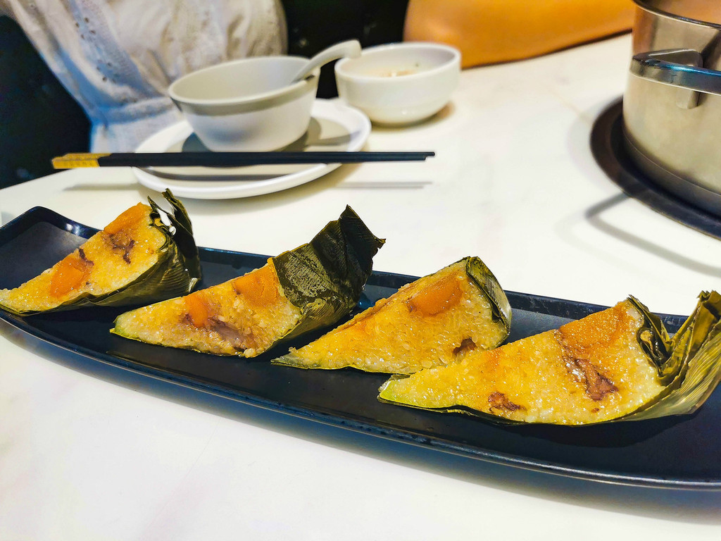 主食当然必点黑猪肉粽和炸排骨,我们三个人虽然已经很饱了,但还是要坚持不能浪费,吃不完也要打包走。其实每次去一家餐厅吃饭,不仅仅是为了食物的味道,也是为了享受环境,尤其像萌哒哒这样可爱的餐厅,名字已经很可爱了,装修的还很有热带雨林风格,在三亚这种热带地方,让人一进来就感觉很清凉,配上绝美的花胶椰子鸡火锅,人间值得~