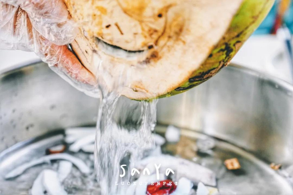 这家小院椰子鸡环境真的没得说,我们仿佛身处东南亚的热带雨林里,三亚冬日的暖阳从叶子的缝隙照进来,不疾不徐,和朋友一起悠闲地坐在椰子树下吃椰子鸡的感觉真心妙极了~ 小院椰子鸡都是户外用餐,环境很好,价格也非常实惠,餐厅距离海边步行不到5分钟,双人套餐才200多,份量大到4个人吃都合适!超划算~很适合呼朋引伴或者全家一起来吃!