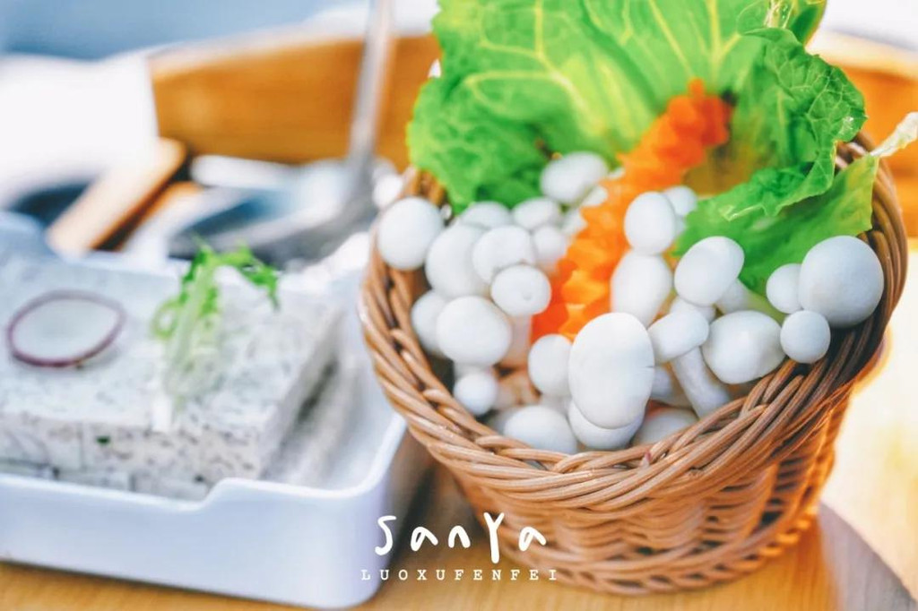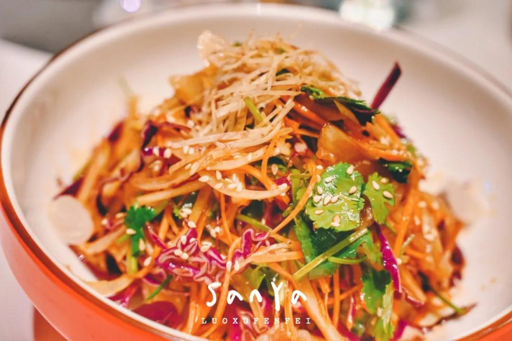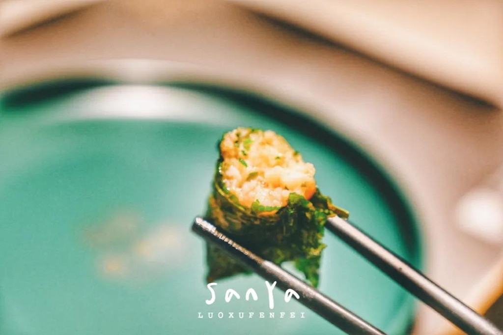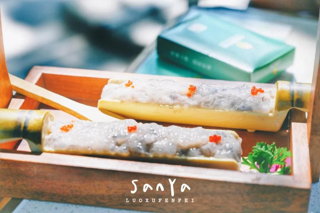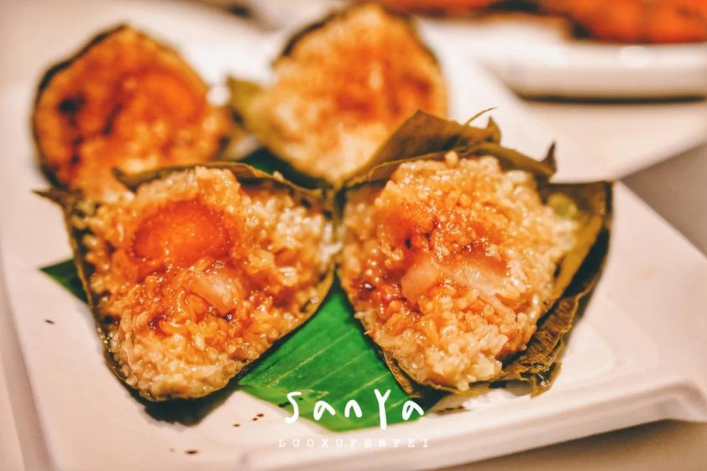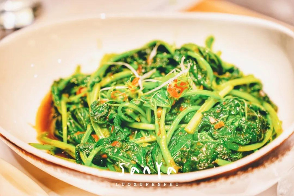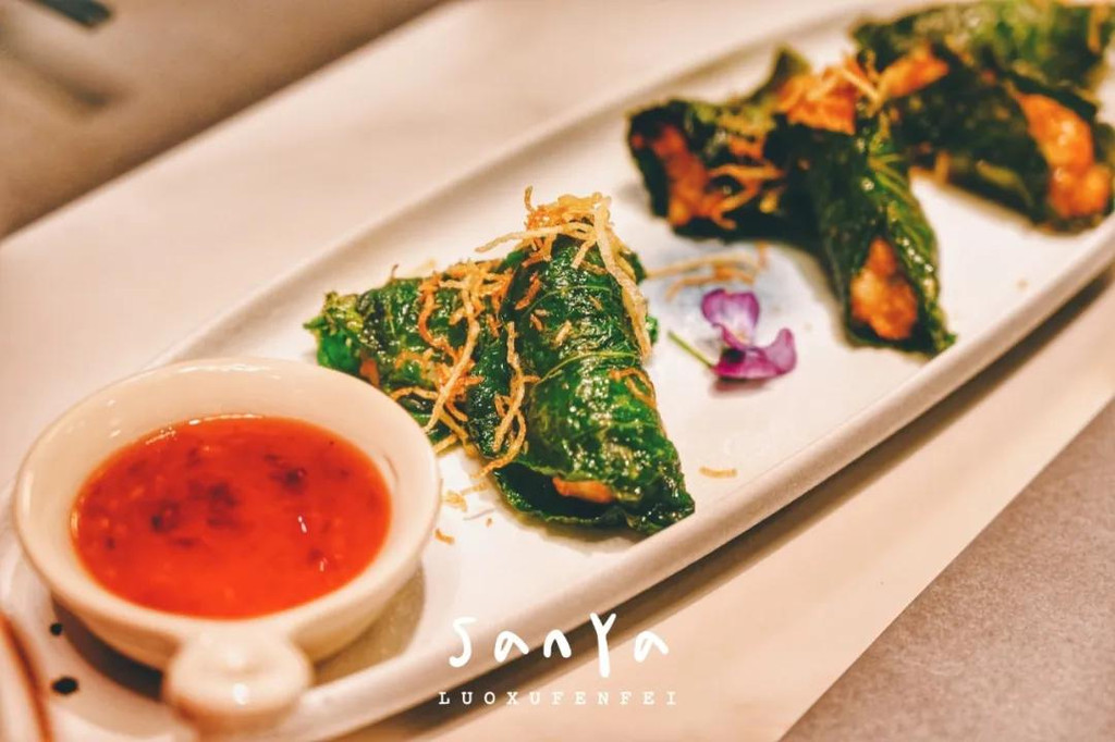配菜有来三亚几乎每个游客都必点的海南粽子,糯米和肉都非常扎实,粽香浓郁;以及有点看不出来形状,却在叶子的包裹下显得格外清爽好吃的特色虾饼;还有看着普通,以为全是菜,但挖下去其实都是鱼肉的沙拉!连炒地瓜叶都让人惊艳~掺了虾酱之后立刻与众不同,还是第一次吃到这么美味的地瓜叶,简直棒呆了!我们都吃到停不下来了~~