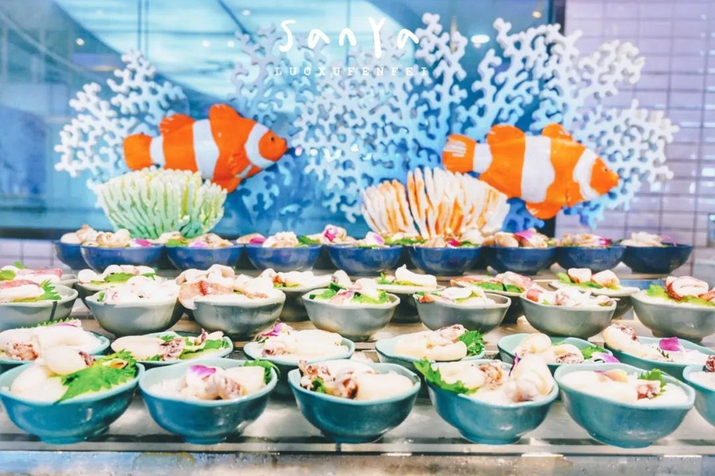 可以选择购物或者逛景点间隔时过来吃午餐,一是中午的自助餐价格更便宜,二是大东海交通便利,去哪里都方便~