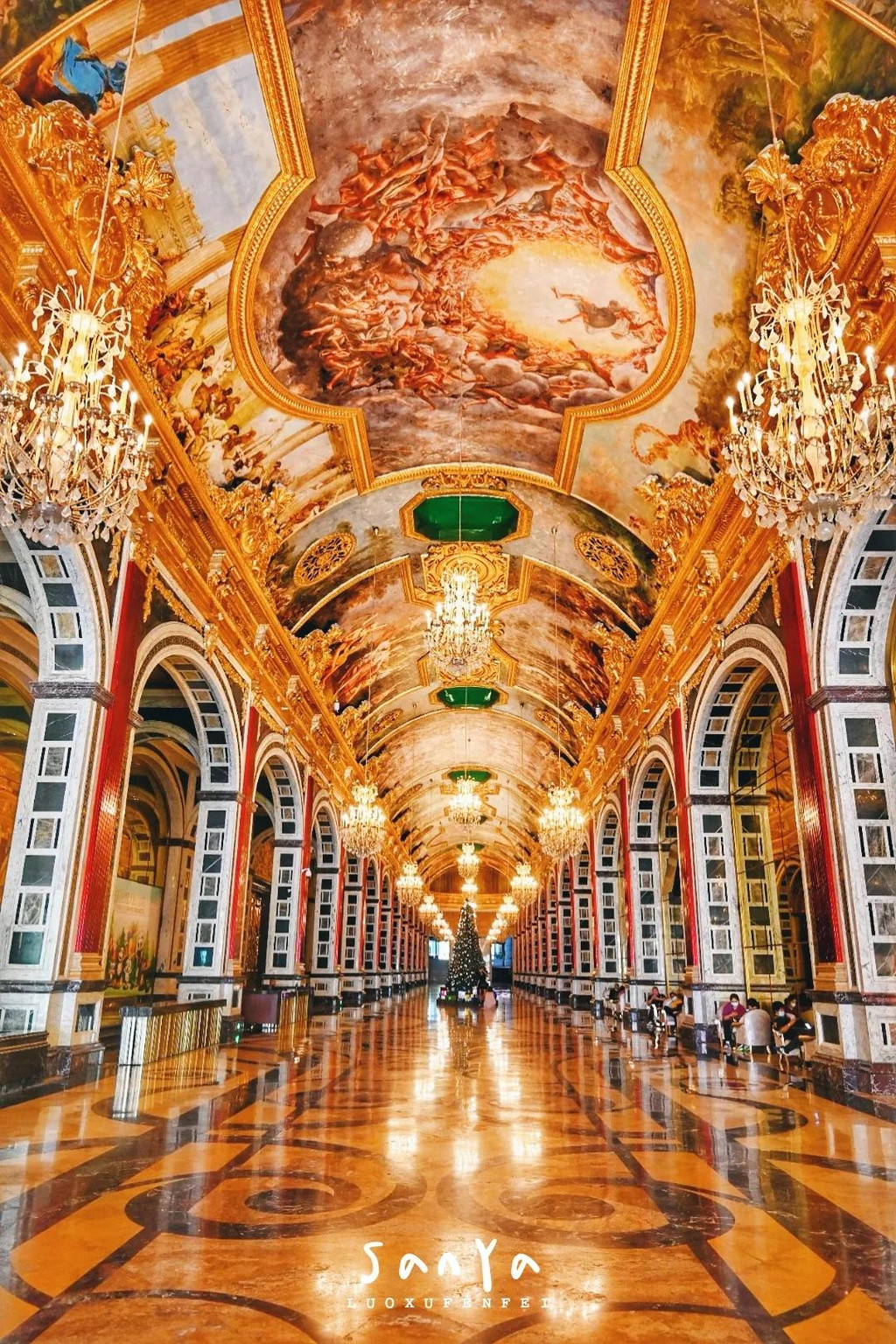之前一直想去美丽之冠看看,这个恒大营造的地产项目从外形上看就非常特别,有种超现实的感觉。西斯廷艺术长廊就在这个神奇小区的负一层,原以为是个荒废的展厅,结果进去一看,才发现自己误入了旅行团的购物点,珠宝城就在隔壁。不过这种美轮美奂的场景拍起照来感觉还是挺不错的,刚才还以为自己在东南亚,瞬间就到了欧洲!满墙的壁画,精美的屋顶和吊灯,很多人都在这里打卡拍照,不愧是三亚新晋的网红景点~