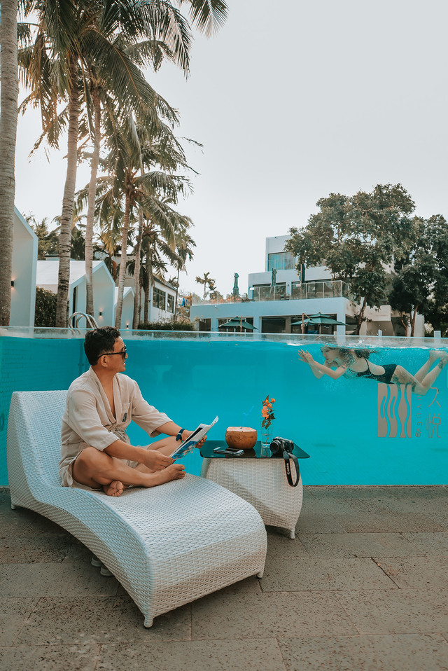 久悦,光听名字就很喜欢,长久喜悦。不管是和谁一起来,又或是一个人来,都让你心情舒畅。作为一个颜控,没有理由不喜欢这里,来之前就知道久悦很火,还有明星来过,来过之后真的是发自内心的喜欢。此次来三亚帽帽是带着老爸出门的,刚开始还怕老爸不喜欢这种风格的民宿,没想到很喜欢,还拍了很酷的ins风大片!