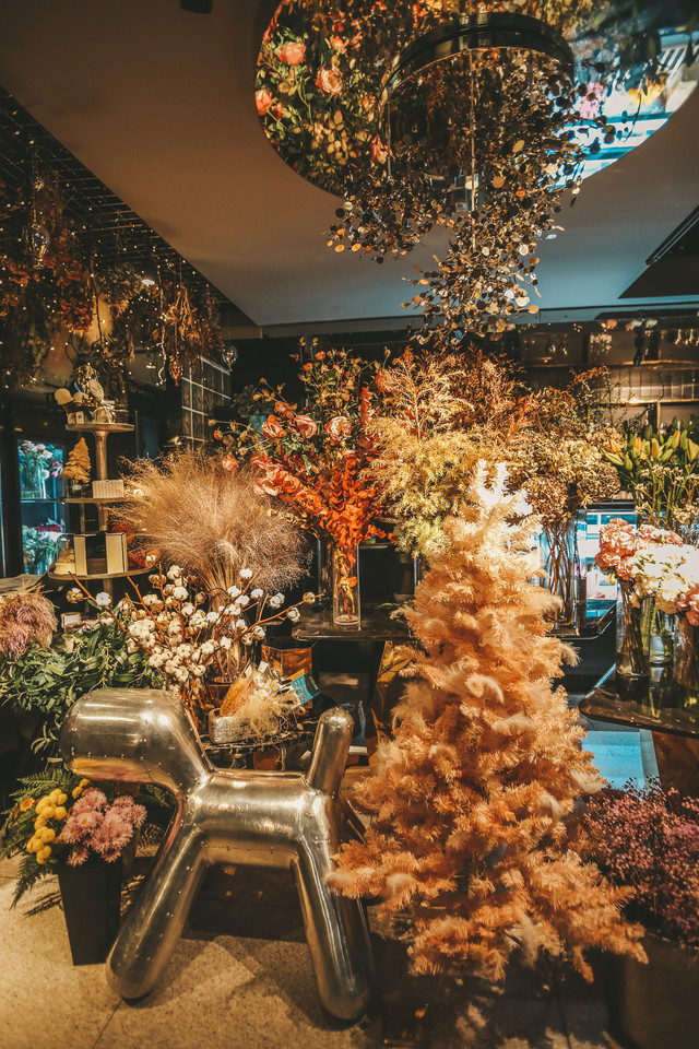 咖啡店是花店、服装店一起的集合体,可以买鲜花也可以买衣服还可以喝咖啡,一楼主要是咖啡和鲜花,二楼是服装。