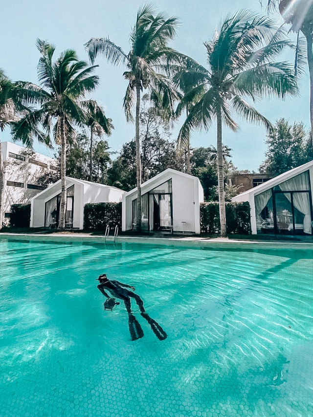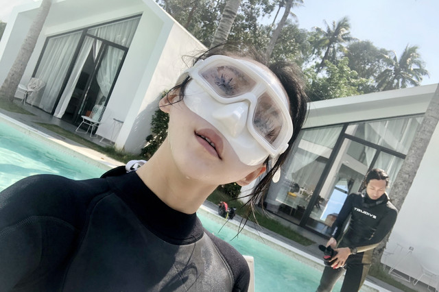 1.体验课是早在环境很好的泳池里进行的,也是一个网红民宿,风景超好,让不会潜水不会游泳的小伙伴放心许多;