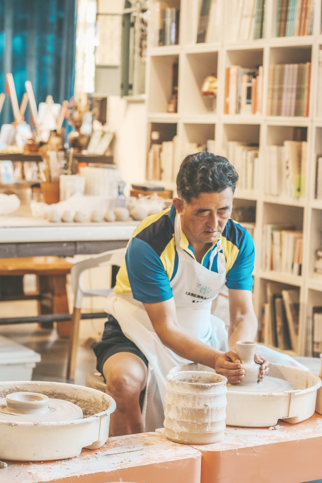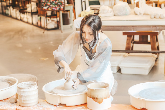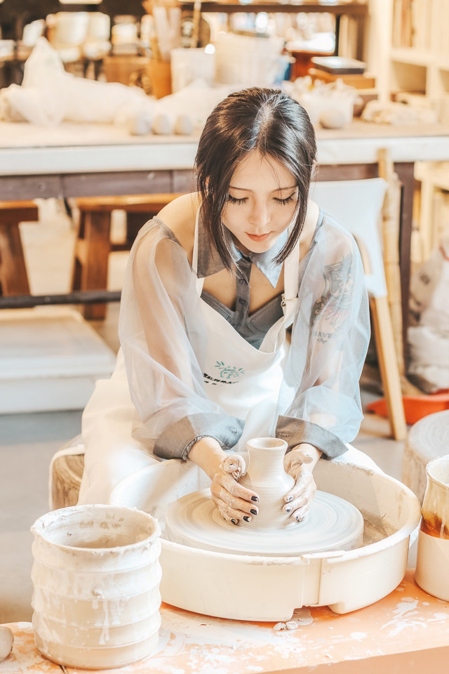 陶艺体验,主要是拉胚。通过捏、揉、拍、挤等技法,瓷坯瓶中细微的弧线、曲线、圈线和圈足都会发生变化,带着惊世的绝美~这里的老师都是非常专业的,而且一对一教学,0基础也能上手。做陶艺的陶土都是专门送景德镇运送来的。你可以自由创作,大胆探索,每一个作品都是独一无二哒。做完的罐子可以烧制而成给你邮寄回家哟~