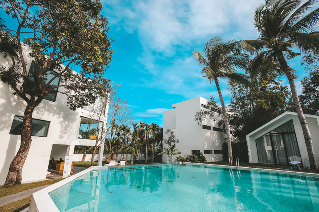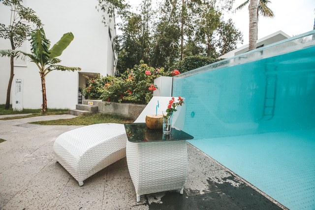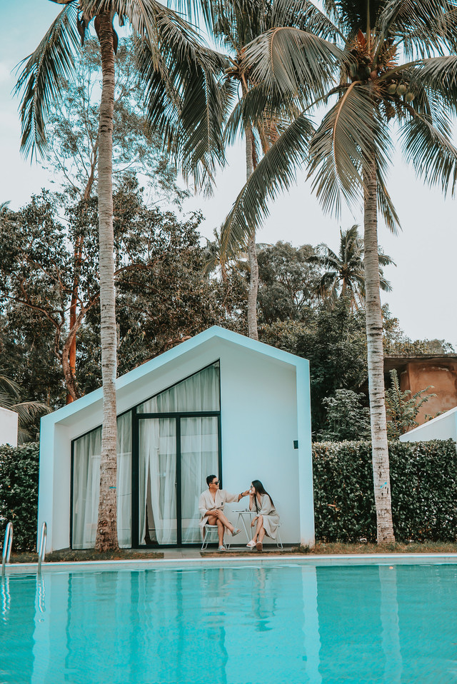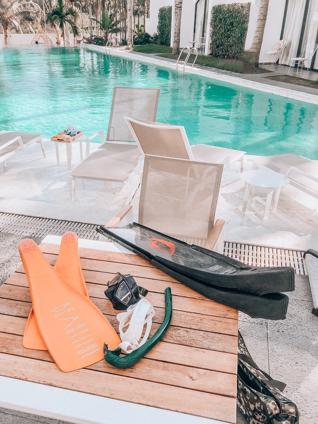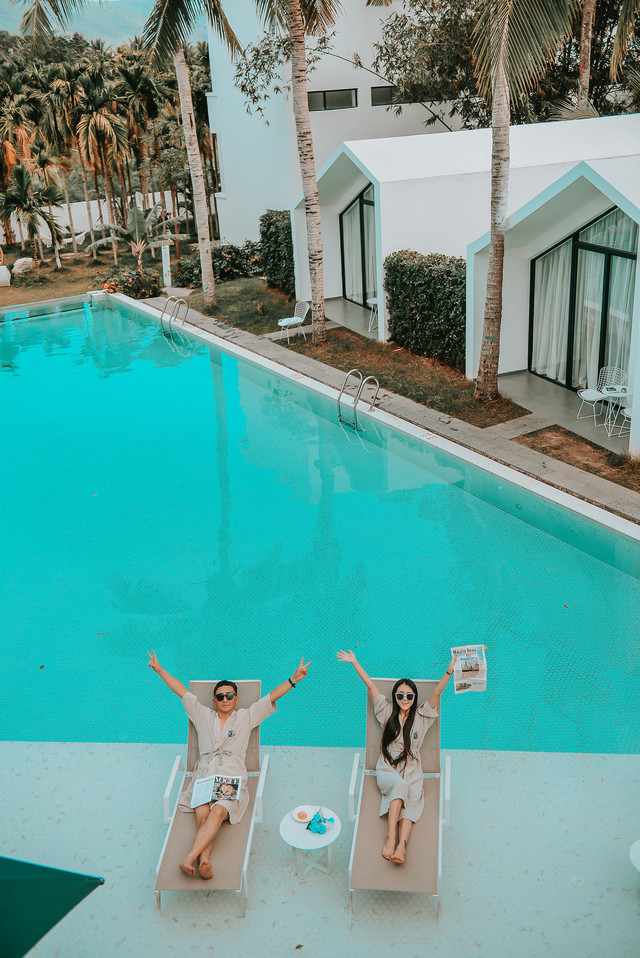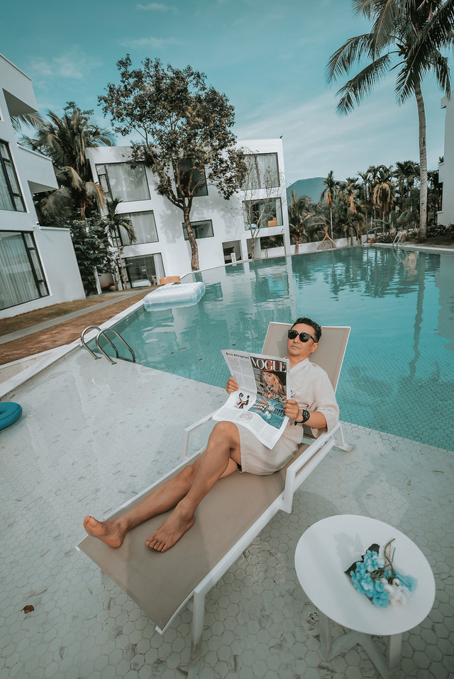 让我感到贴心的是,民宿里有很多拍照道具,比如报纸、糕点模型之类的,很好看~所以你一定要去拍网红打卡照片,当你在泳池,白色房子,椰林里时,这就是度假开启的正确模式~你可以躺在沙滩椅上,休闲的晒太阳,也可以在吧台点一杯饮品,享受下午茶的惬意。