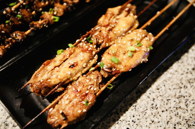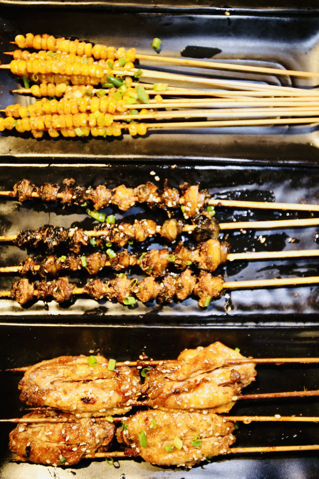 在怀旧海鲜烧烤,海鲜绝对是新鲜的,我们两个人点了很多!羊肉串是当地的东山羊,一点儿腥味都没有,牛肉串是当地的小黄牛,肉质鲜美,简直爱了~烤玉米粒、烤鸡翅,也非常棒!