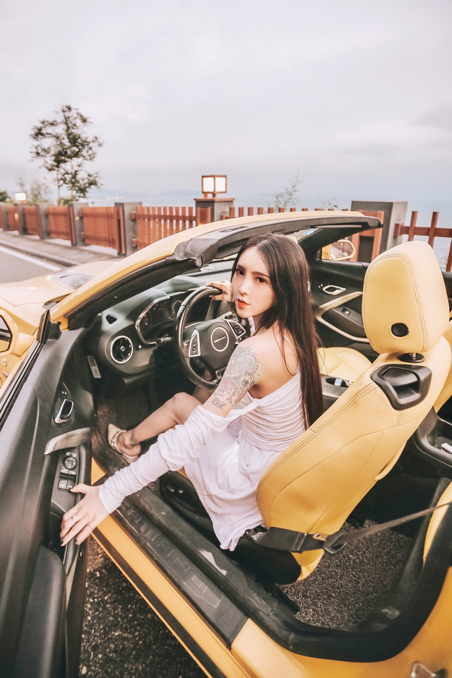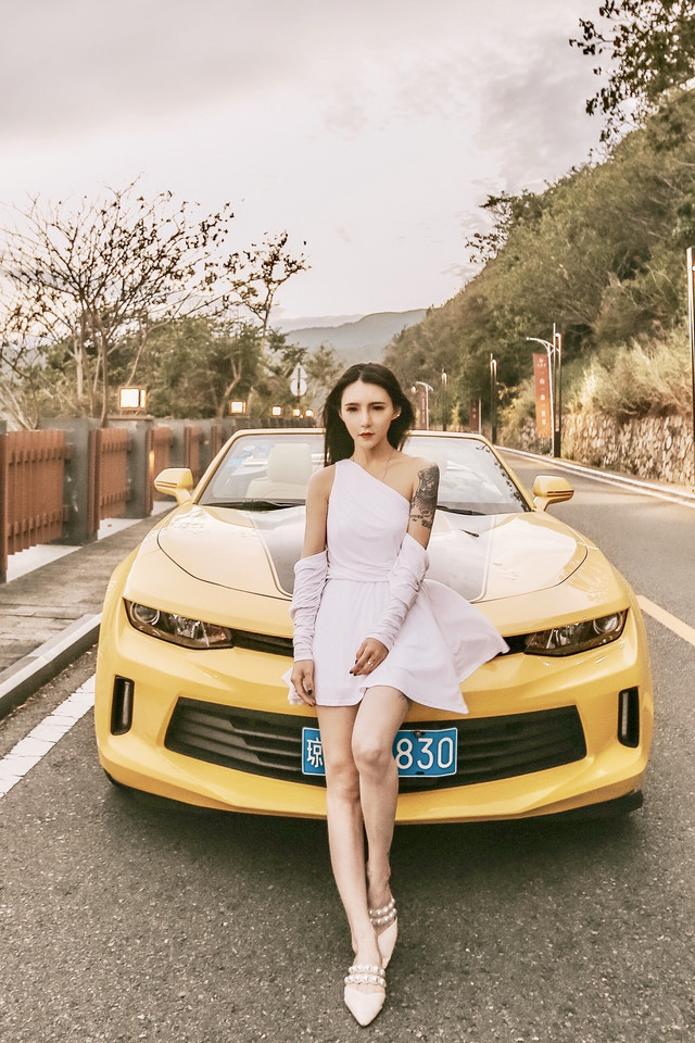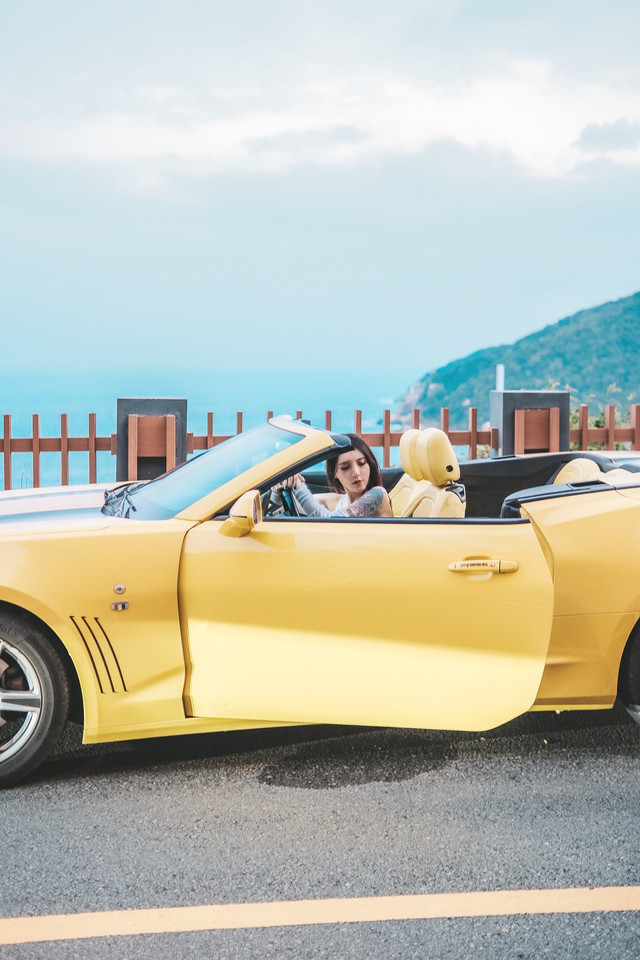 我们找了一辆敞篷版的大黄蜂,感觉它超级符合三亚的味道。车模帽帽登场咯~
