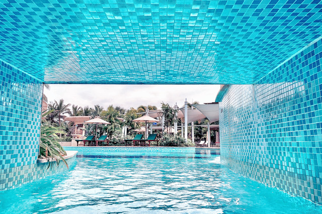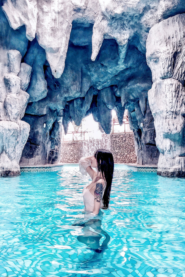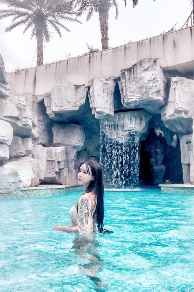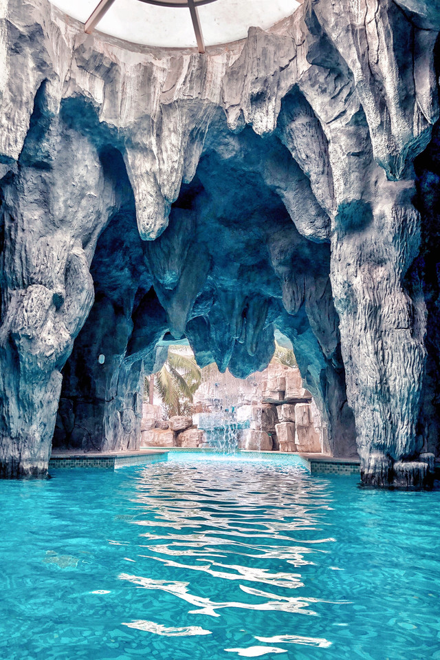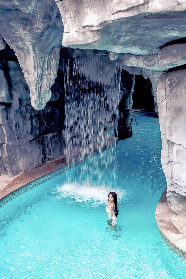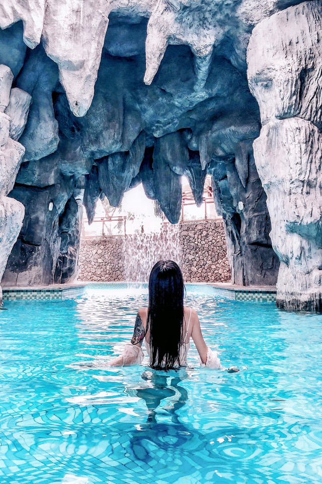 酒店最美的就是这个超级热带雨林感的洞穴泳池了,拍照真的真的很好看,它隐藏在泳池深处,你要从水里游过去,进入公共泳池穿过一个小桥就能到达,在溶洞里面两侧还有休息的躺椅,里面很凉快~你还可以点一份儿网红水上下午茶,超级美哟,而且价格也不贵~