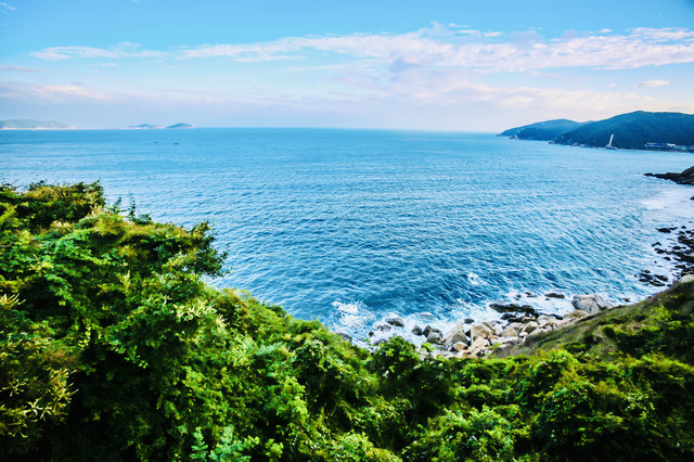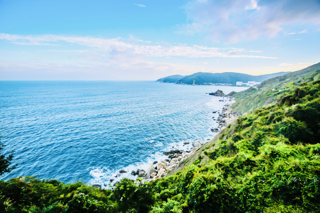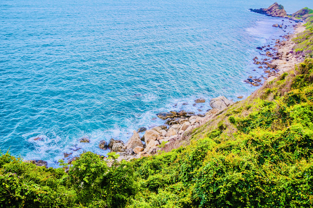 这段大约8公里的盘山公路,包含了整个太阳湾的最美景色,公路一边是青葱的山,另一边是蔚蓝的大海。