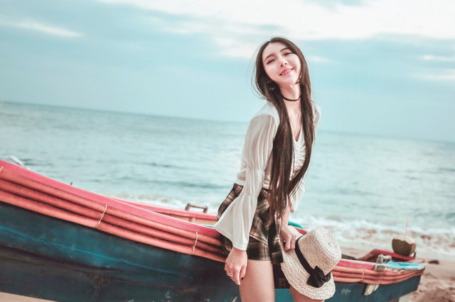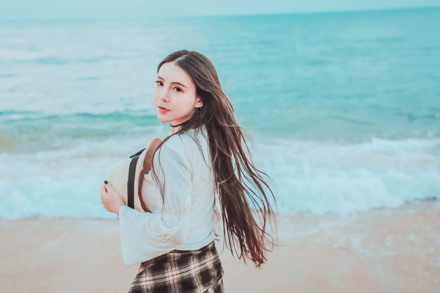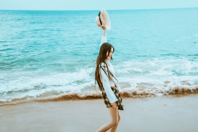尽情享受在海边的温柔自由之中,面对拿着相机为我拍照的老爸,我笑得像个孩子一样,这种久违的快乐真好!