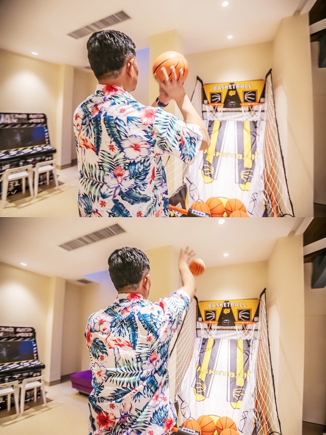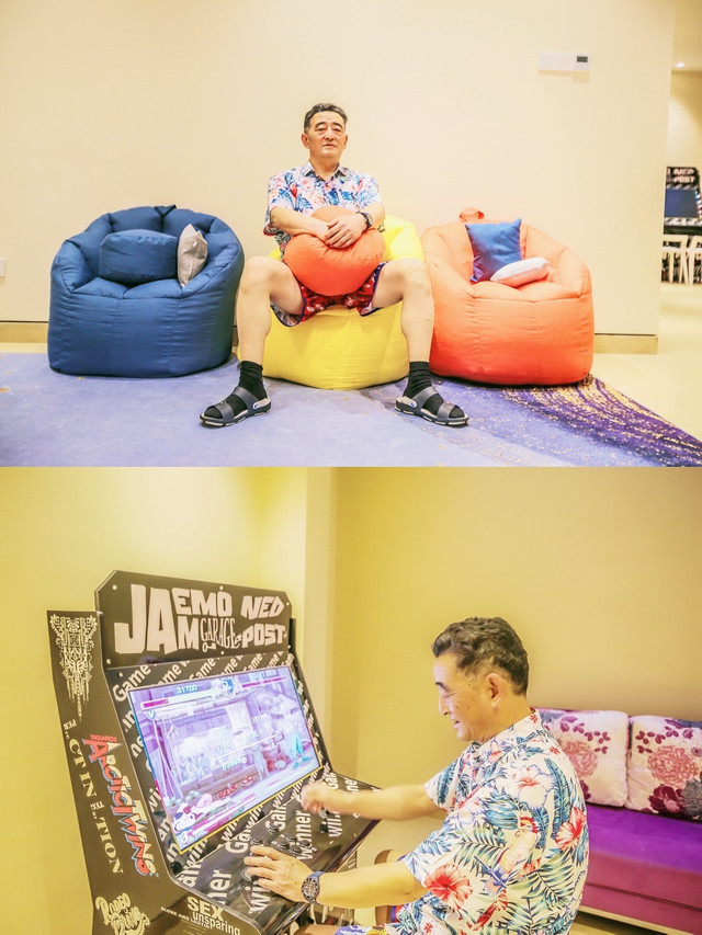 老爸年纪大了就和老小孩儿一样,我们俩经常吵闹,但我知道他其实比我还爱玩~这个小别墅的地下一层里有游戏机,可以打拳皇,还有投篮的电子篮筐,我可以和老爸比赛投篮;这里还有超大的投影,也有休闲娱乐的麻将机~