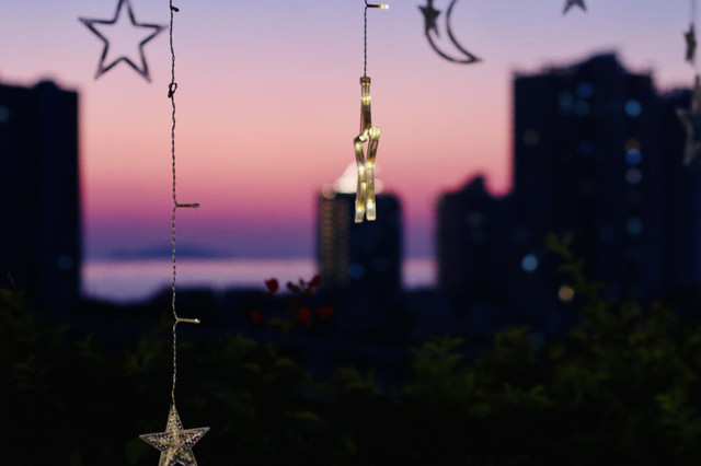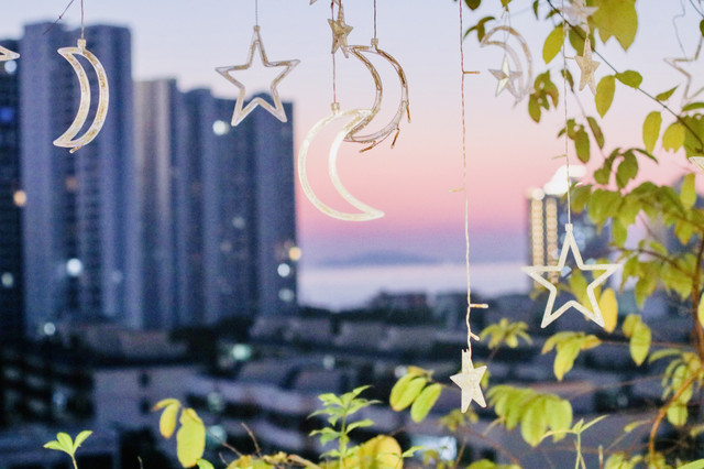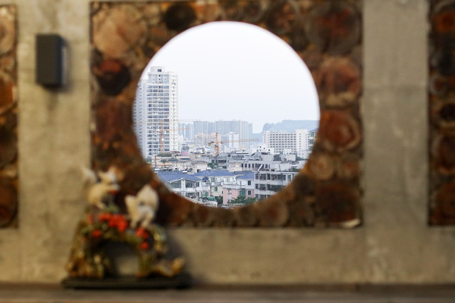 天台私厨位于这座公寓顶楼,天台景色优美,尤其是晚上的夜景更加的迷人,听我的一定要在夜色初上的时候在圆形的窗口那里打卡,超级超级美!