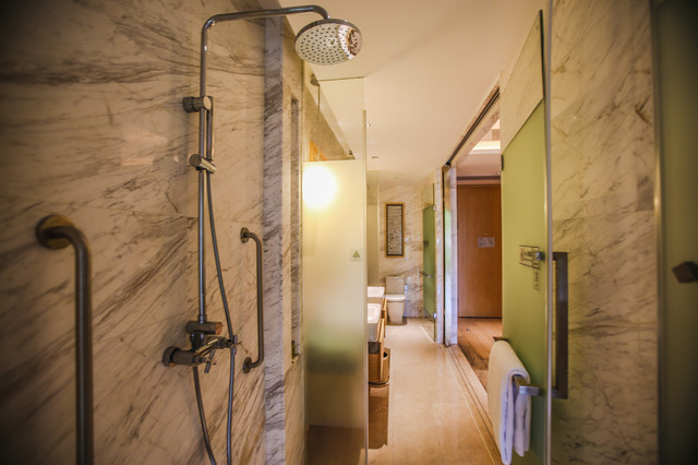 酒店大堂和泳池都很大,大堂的灯是千纸鹤样子的,水吧在大堂,晚上你可以坐在水吧喝杯茶,看看远方的风景,惬意的感觉慢慢涌上心头~
