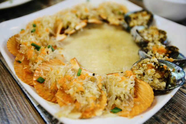 最好吃的是皮皮虾,肉很大很香,一上桌没多久我和老爸就吃完了~扇贝也很好吃,蒜香粉丝肉融合在一起,让人意犹未尽~