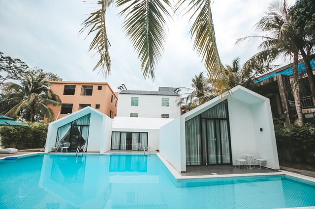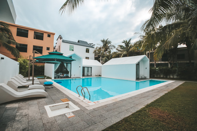 先来说说民宿的设计,民宿整体外观是白色的,满满的ins风,简约大方~院子分两个,两面都很好看,我更喜欢我住的那面,非常安静,泳池也同样美,而且人们都去拍无边泳池,你可以到这面出一些与众不同的照片~