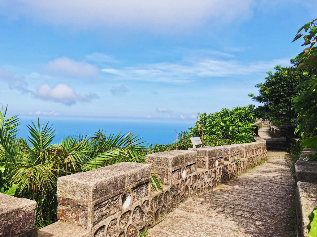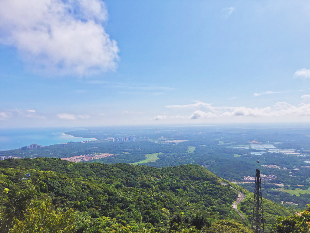 晌午刚到,便迫不及待的开始了我们的吃鸡大战!文昌鸡色泽淡黄光亮,皮脆肉嫩,味鲜骨酥,蘸上特制的海南酱料,香味四溢,肥而不腻,十分爽滑可口!吃饱喝足之后,文昌旅行第三站,铜鼓岭,三面环海,地貌奇特,大家坐着电动车上了顶峰,在那我们能看到最美的月亮湾。俯览整个山岭,月亮湾海浪翻涌千层,海天一色空朦,在这你会感受到人类的渺小,放空自己,放下无尽的烦恼和疲惫。