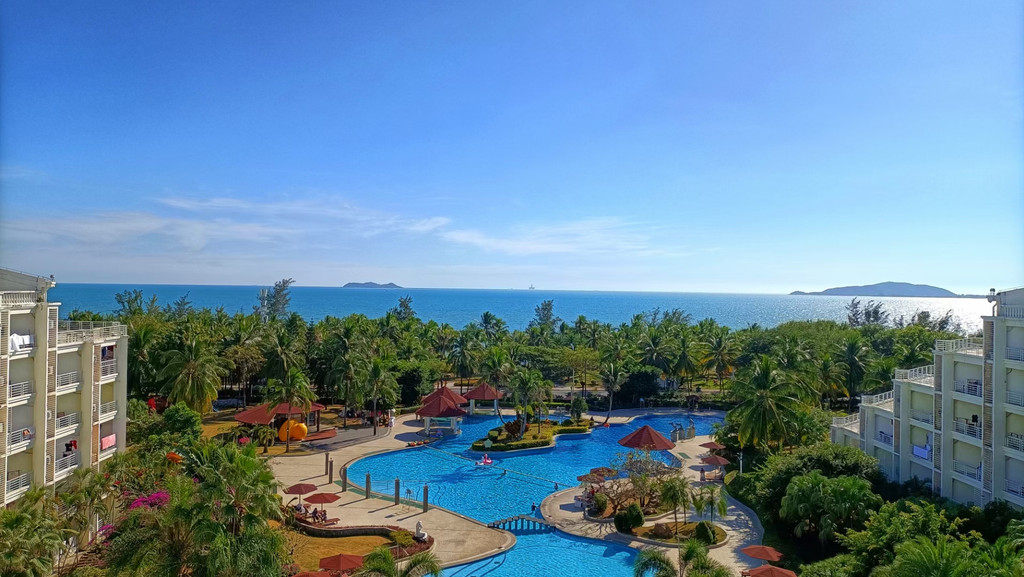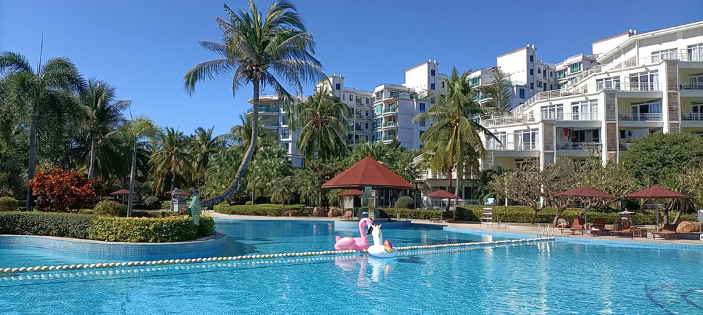 不过因为岛上只有客栈,而且在上边不玩项目,其实也不会有太大的吸引力!最后我们决定去附近的酒店入住,这里选择了性价比高的天福源,因为是刚装修的酒店,而且海景效果很好,特别是园林的风景,大大的泳池!