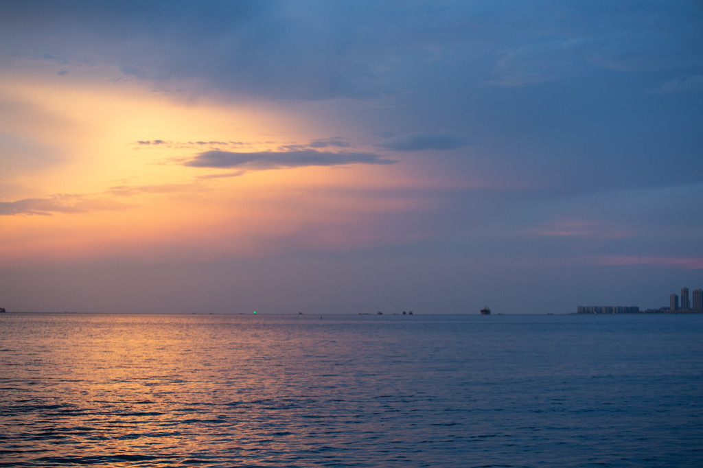 海口第五站,海口西海岸,游客首选之地,也是海口市民节假日里度假休闲得地方。由日浴区、海上运动区、餐饮区和休闲区等组成,距市中心约10公里,东与西秀海滩公园相连。做好防晒措施,因为最近的海口太阳实在是太厉害了!这里的夕阳很美。