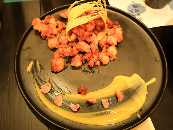 一块豆腐,东北菜的内核加上了海南菜融合的改良,很多菜品称得上是独此一家了。店里的豆腐都是自己制作的,在餐厅里有着一个专门展示豆腐制作工坊的橱窗,从泡豆子开始,如果你有时间的话,你可以看到一块豆腐的诞生,用传统工艺打磨制作出来的豆腐一块就需要三个小时,可以说将豆腐做到了极致,呈现在我们面前清白如玉的豆腐尝起来极其鲜嫩,十分诱人。