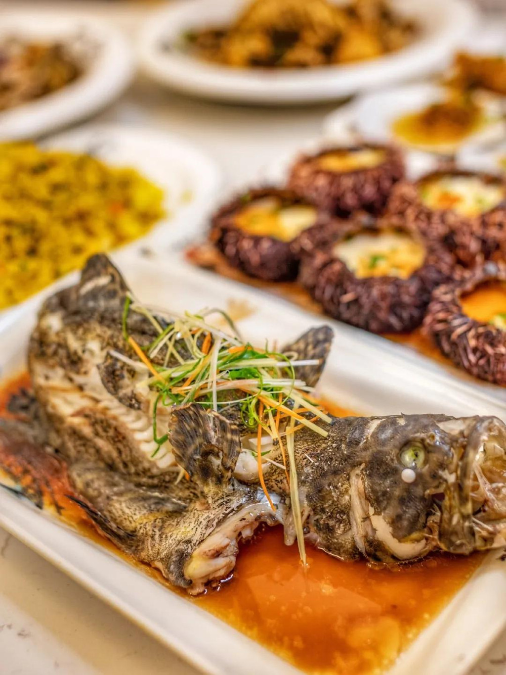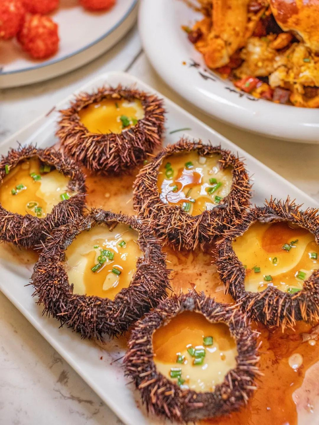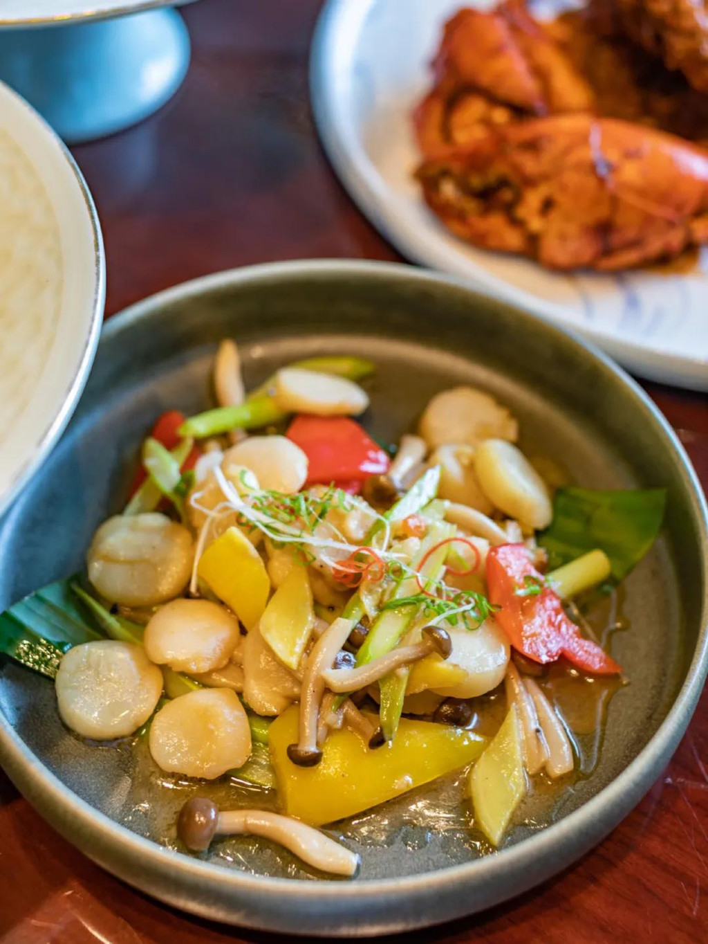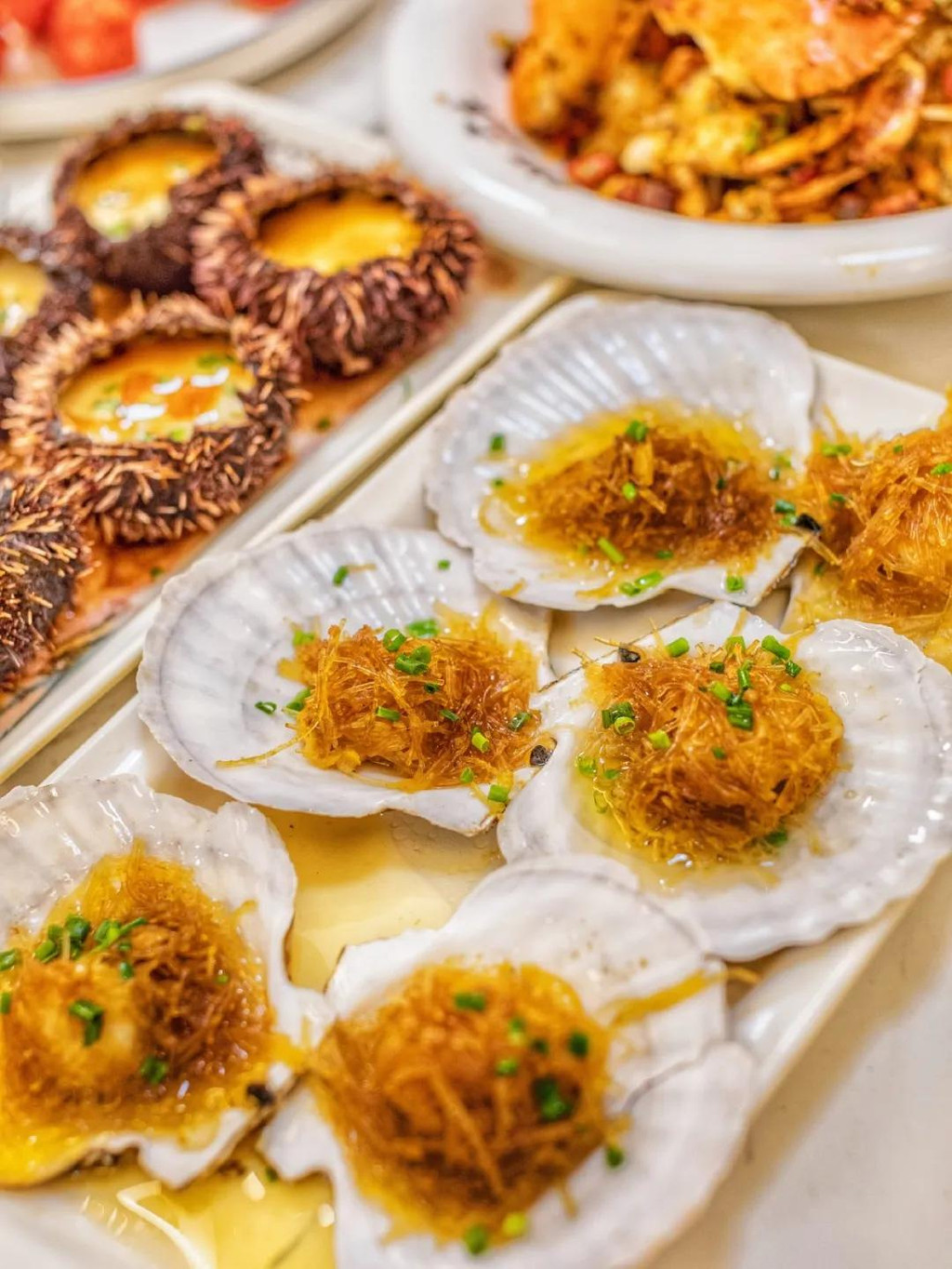 此外,蒜蓉粉丝蒸大圆贝、清蒸石斑鱼、🍍菠萝炒饭和海胆蒸蛋、清炒四角豆也都蛮好吃~