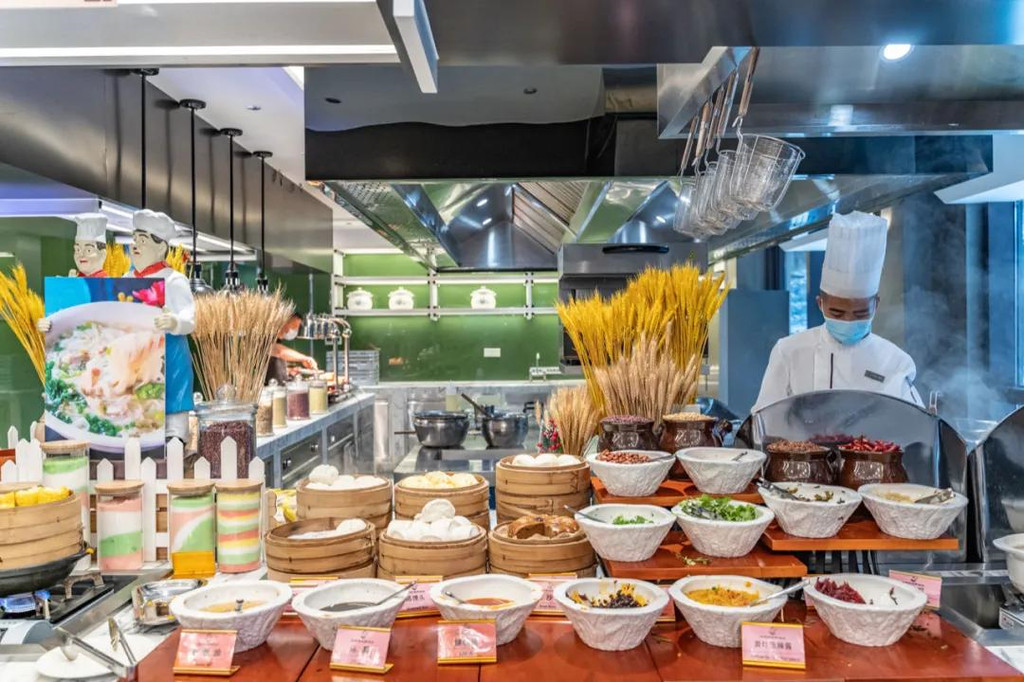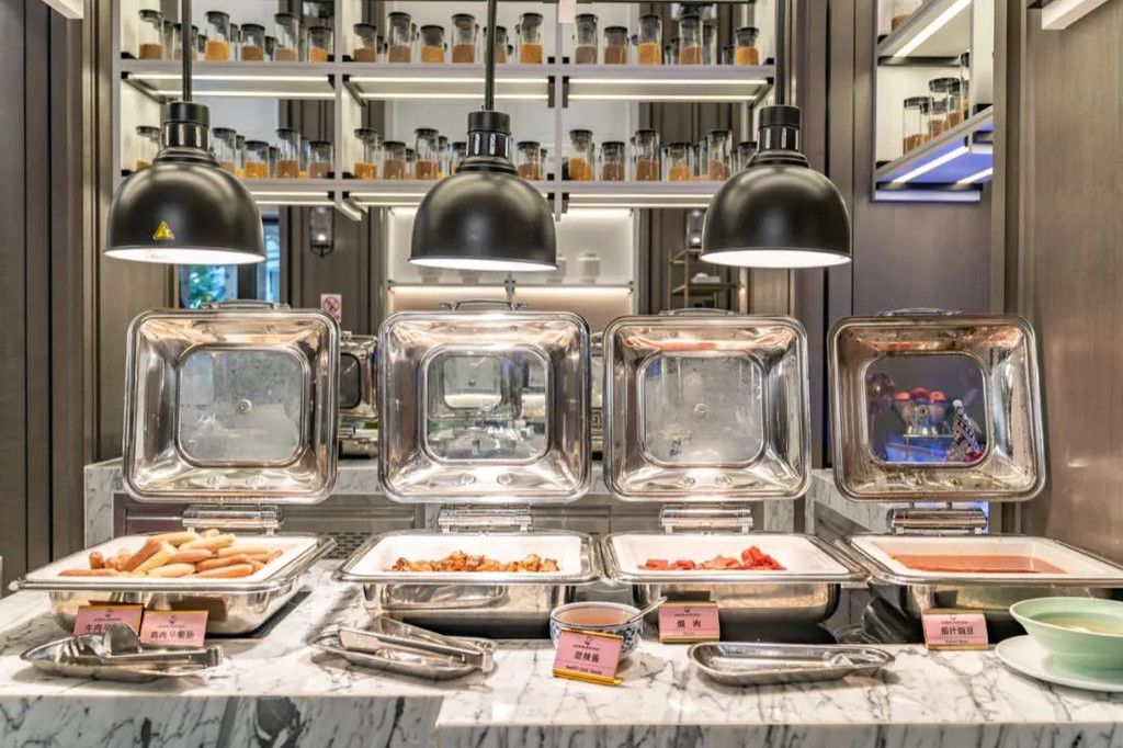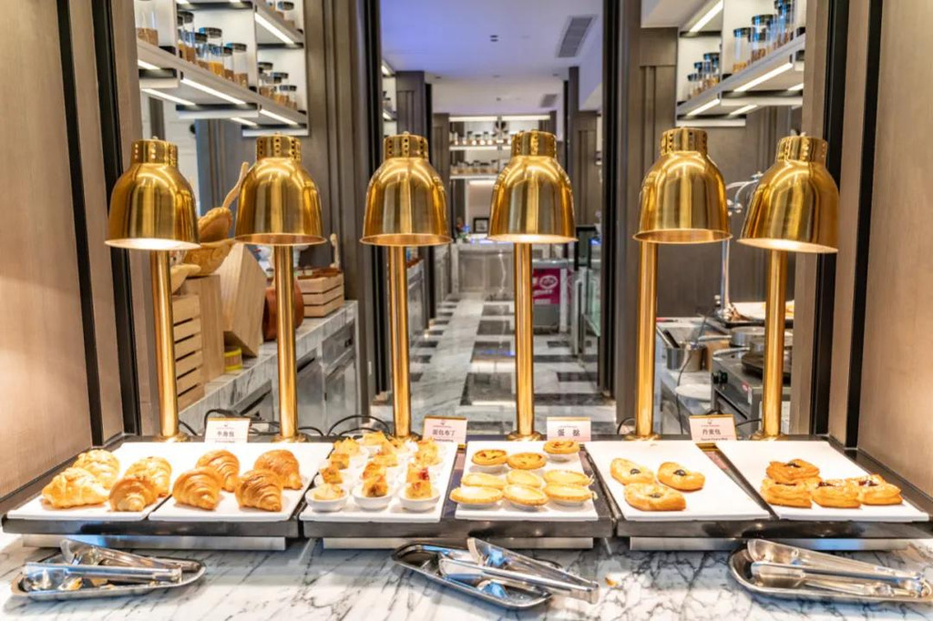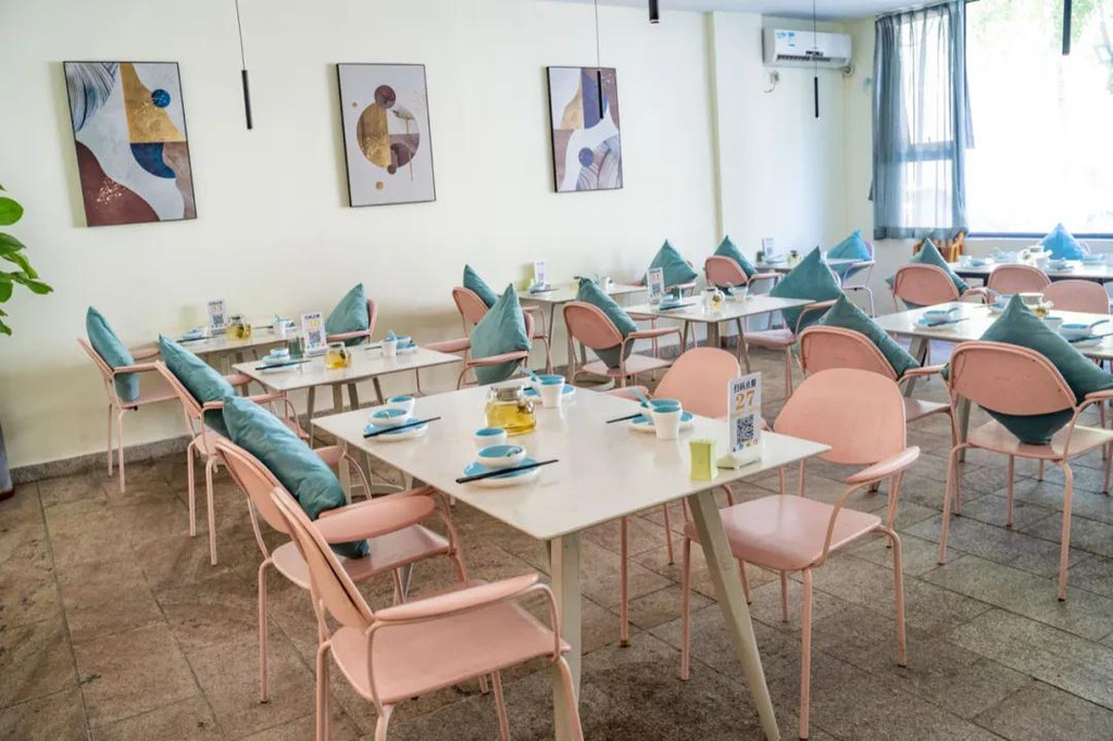 酒店的餐食也不错,早餐就在一楼右侧,一楼左侧是酒店的网红餐厅,主打各类创意菜。先说早餐,早餐种类丰富,面包糕点、米线面条、果汁饮料应有尽有,三亚特色的抱罗粉也有,吃的时候记得加上一点黄灯笼辣椒哟~