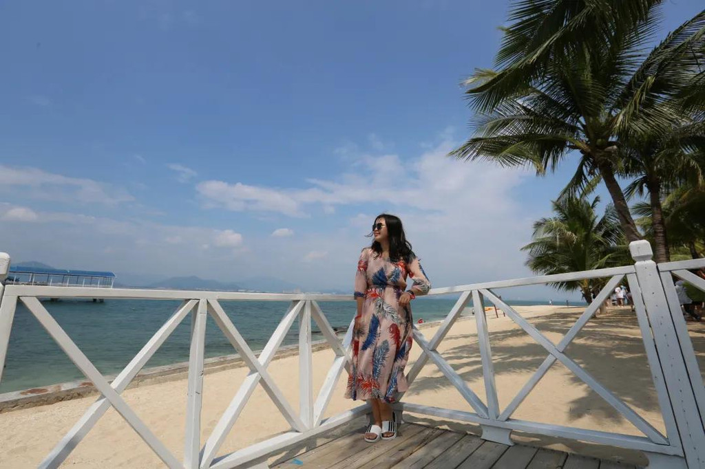 玩水之前还是先去打卡了牛王岭,这里是欣赏岛上日出和日落的最佳之地,拍照也很出片。随手倚靠护栏,海风轻拂发丝,加上碧海蓝天的加持,随手拍都美如画。