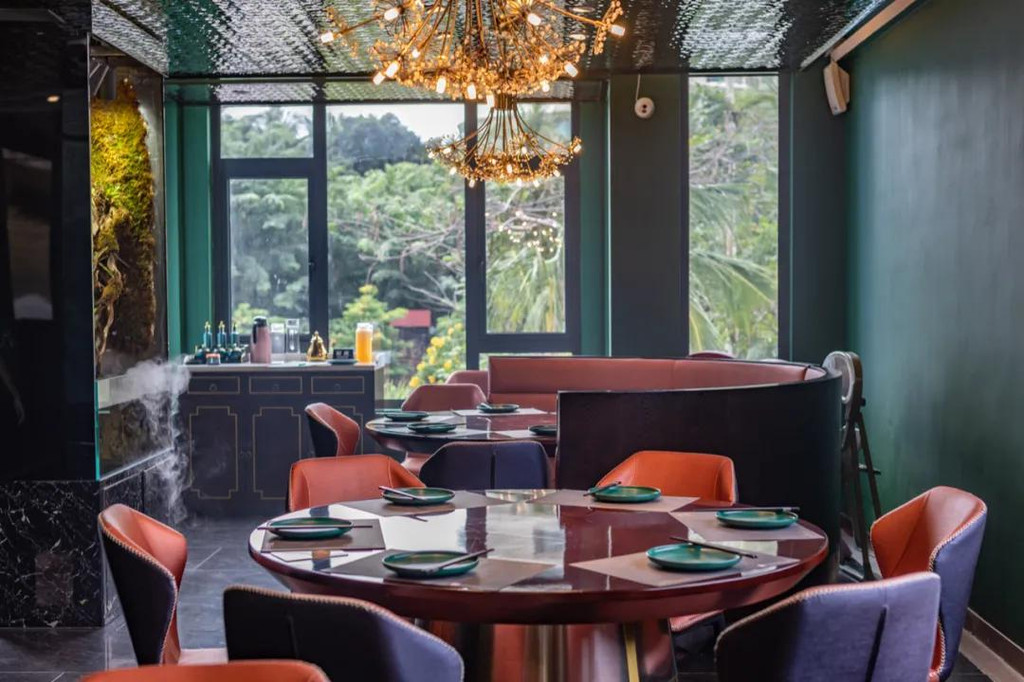 这家美食就在海角院子的独栋别墅里!这里的装修融入了海南当地特色和地中海风情,也有点东南亚的感觉!🌵餐厅环境格调高雅,蓝色小别墅,透明泡泡屋,高级的莫兰迪绿装潢,餐厅整体的格局打造、餐具和氛围都超有情调。