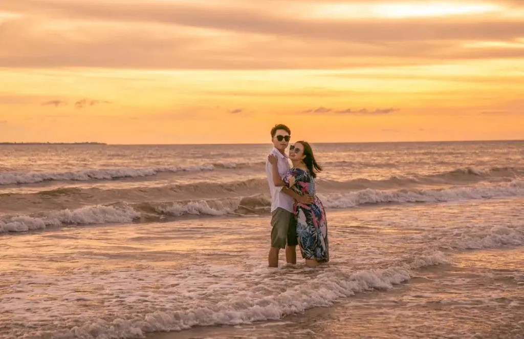 日落的过程大概持续十几分钟,整个海面被晕染成温柔的金黄色,暮色西沉,携手爱人光着脚丫踩着沙子踏浪,温柔的海风拂动发丝,我能清晰看到他眼中的温柔与笑意。这一刻的岁月静好,生活像加了蜜一样甜滋滋,心底的幸福都在冒泡泡~