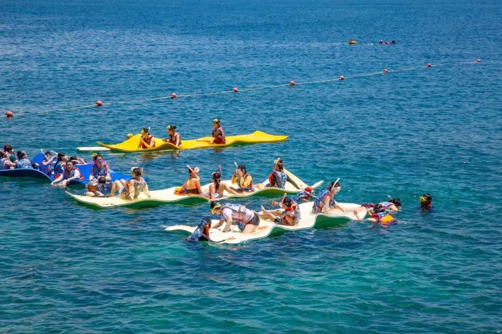 除此之外还有许多海上项目可免费玩,飞鱼、香蕉船、摩托艇、冲浪,都是免费的,不过教练开摩托艇的速度让我觉得我的头发都要脱离我的头皮了,真是闪电般迅速~飞鱼很好玩,海浪打在脸上,大家一起尖叫的时候,感觉好开心,这才应该是旅行应有的模样!