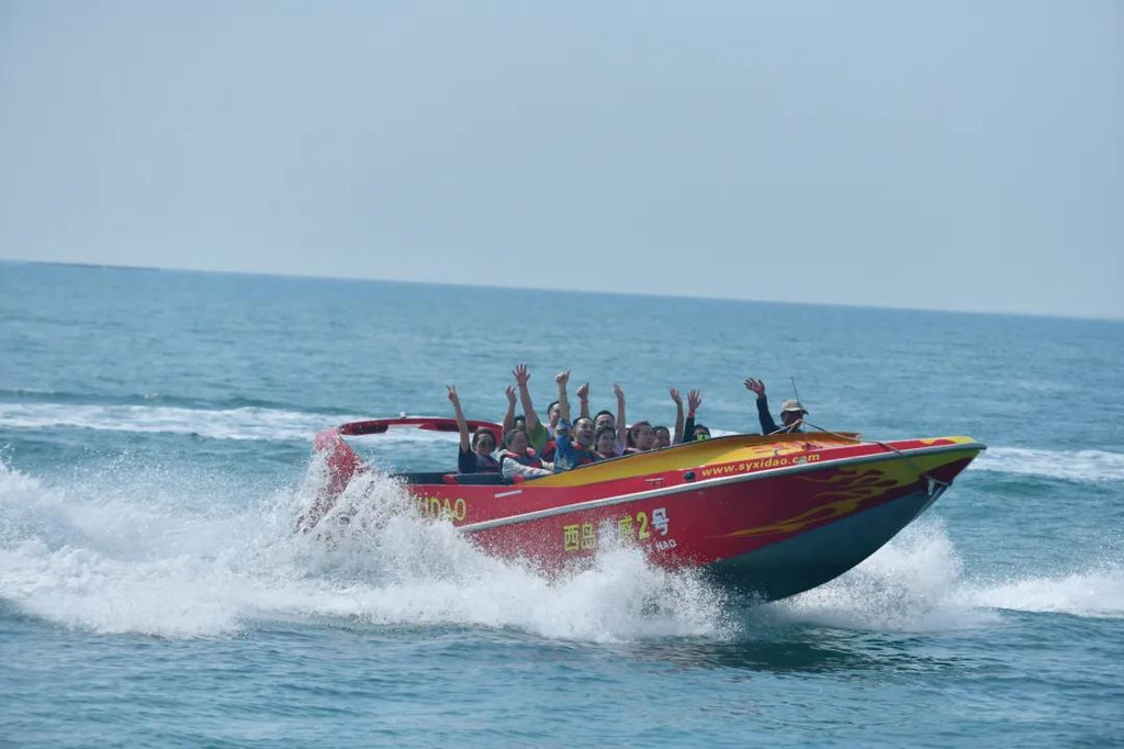 动感快艇则是一场速度与激情的狂欢,来不及反应的瞬间就有海浪打到脸上,一波未平一波又起,笑骂声不绝于耳,大家都沉浸在疾驰的畅快中去了,上岸一抹脸,全是盐粒。