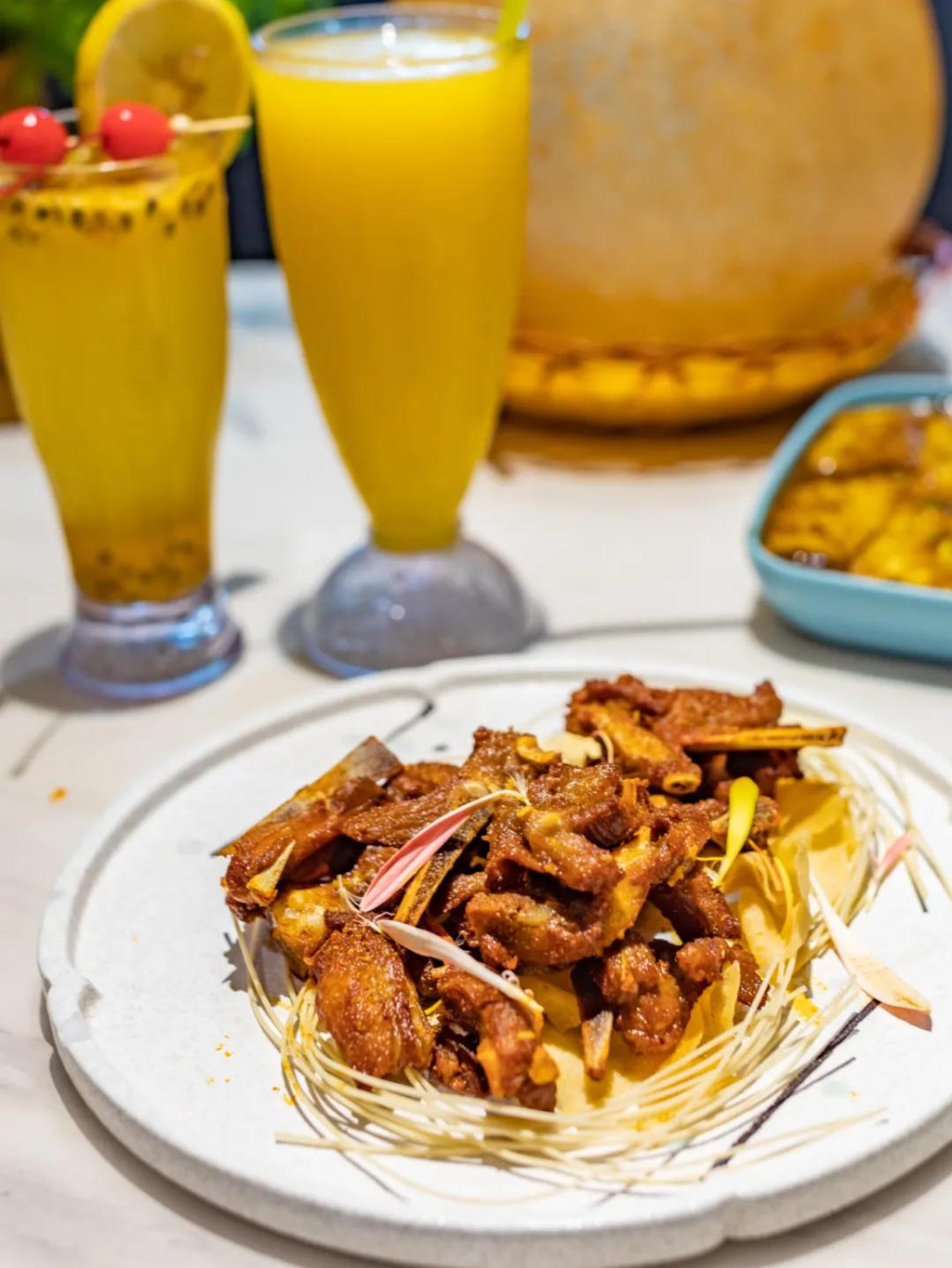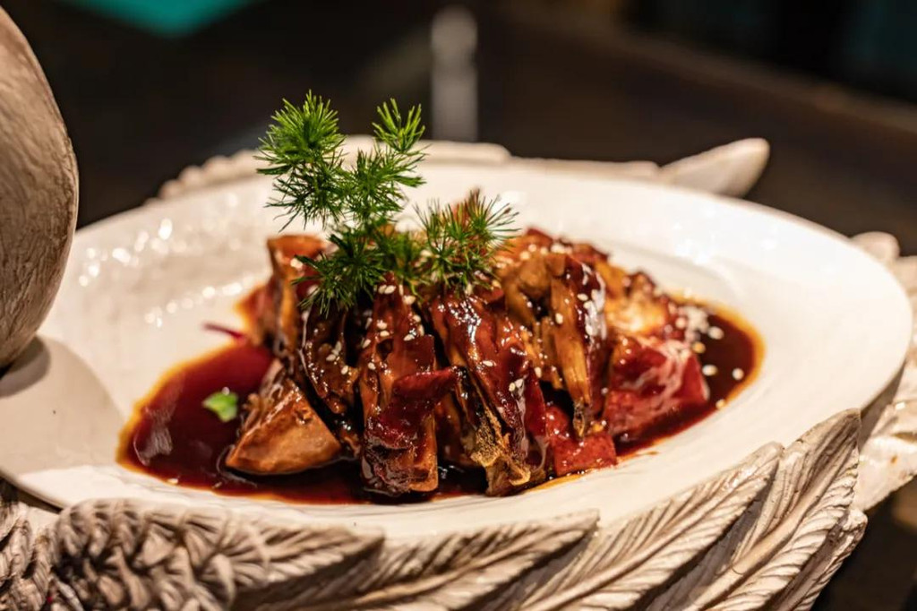 孜然东山羊小排:东山羊是海南四大名菜之一,饲养繁殖始于明代,被列为皇室贡品。它的皮韧肉肥腴香浓,肥瘦相间软糯可口,不腻不膻