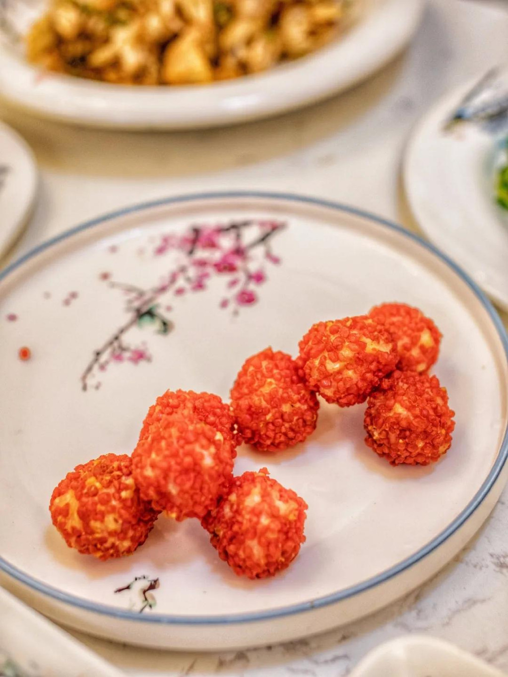 贵妃笑品虾:私房创意菜,像一颗荔枝,里面的虾肉嫩滑Q弹,超有劲