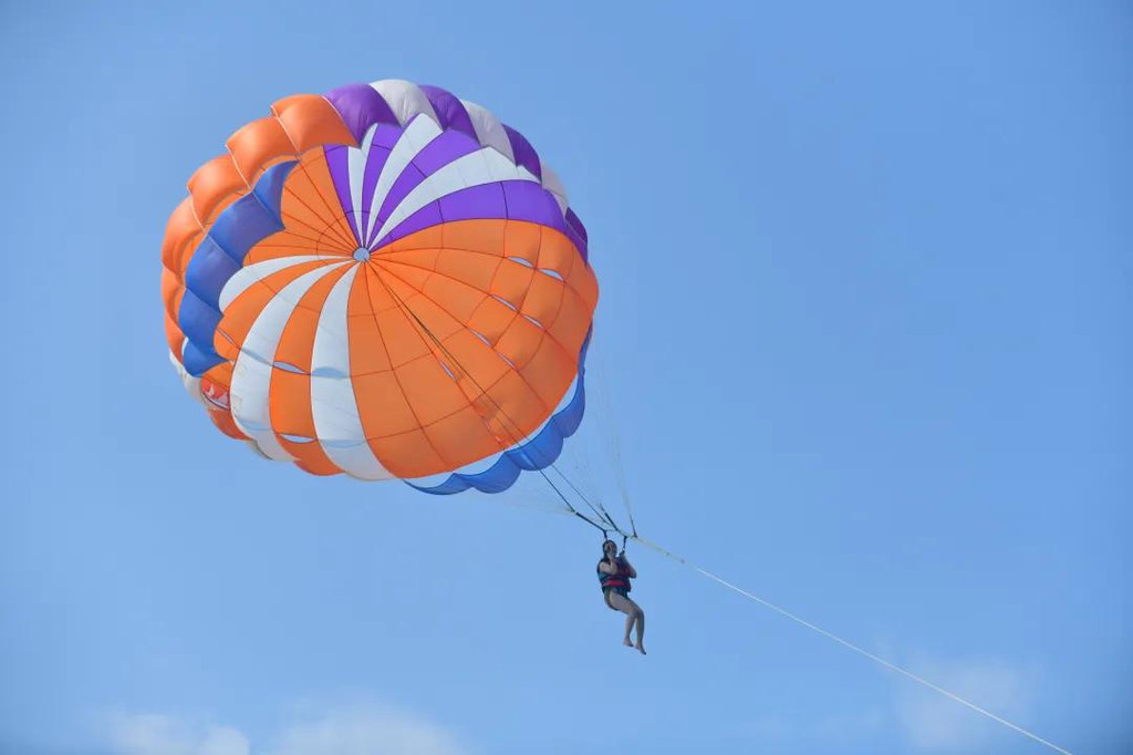 拖曳伞是单人体验,我做好安全措施以后就像风筝一样被放上了天。年轻时无所畏惧,年岁渐长后开始害怕和担忧,我是来来回回犹豫了几次最终在老公的怂恿下报名了拖曳伞,没想到上天的感觉这么好,20-30米的高空上,用平稳安全的上帝视角看到了平日里看不到的美~