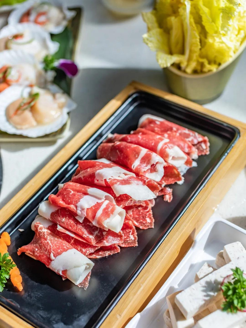 雪花肥牛和娃娃菜:吃汤锅的最佳搭配,煮椰子鸡汤里配上海南风味蘸料是一绝!