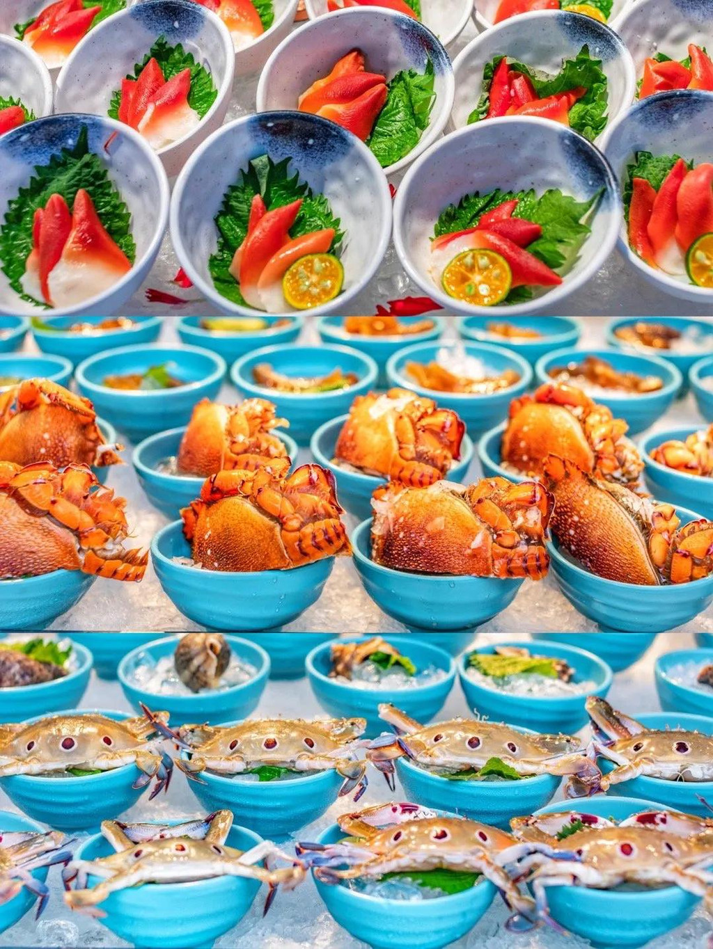 除了海鲜,还有烧烤、刺身、寿司、热带水果、酒水饮品、甜品冰激凌等等,多样的品种选择,想吃啥都有~