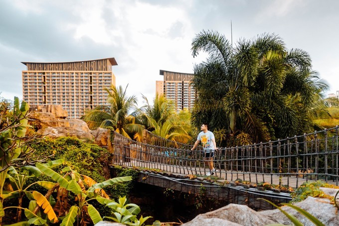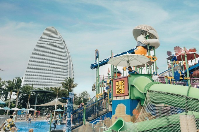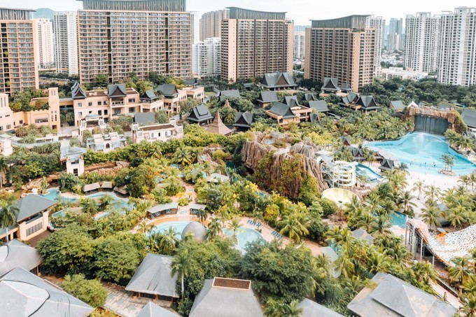确实这里坐拥着有7家不同主题的酒店,我就在椰林酒店和棕榈酒店各住了一晚,房间阳台都有超棒的视野,可以看到其他酒店大楼、水上乐园等等度假村的各个景色,棕榈酒店则是非常可爱的亲子主题酒店。