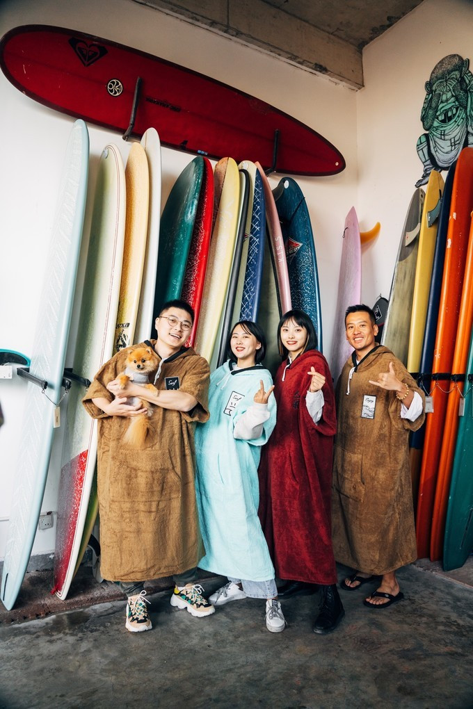 而在后海村,我习惯入住在亼楽(jile)冲浪客栈,就在后海边上,不仅有泳池吧台,而且可以直接下海玩,老板也经常会组织活动让大家来游玩。这次我又在他们家买了一件浴袍,适合在冲浪结束后暖和身体。
