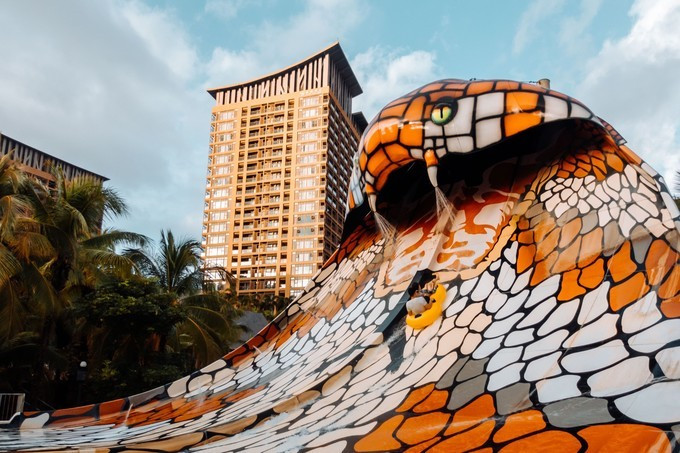 水上乐园有丛林漂流、眼镜蛇滑倒、大水碗、造浪泳池还有儿童游乐区等等,非常适合亲子游。如果玩不了刺激项目,可以就玩漂浮,慢悠悠的度过下午时光,边玩水边看酒店景色。