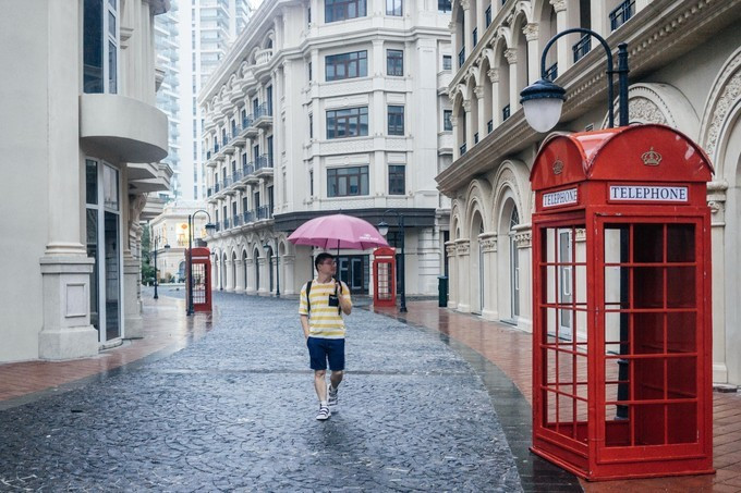 这里值得拍照的有充满英伦风十足的红色双层巴士,还有好多红色电话亭,这样的红色元素怎么拍都会有种复古感,加上两边是高大的欧式建筑,还有几个外国游客在散步,不敢相信自己是在 三亚 。