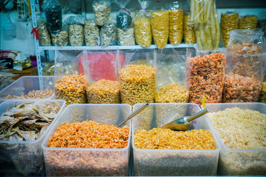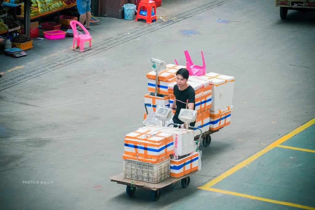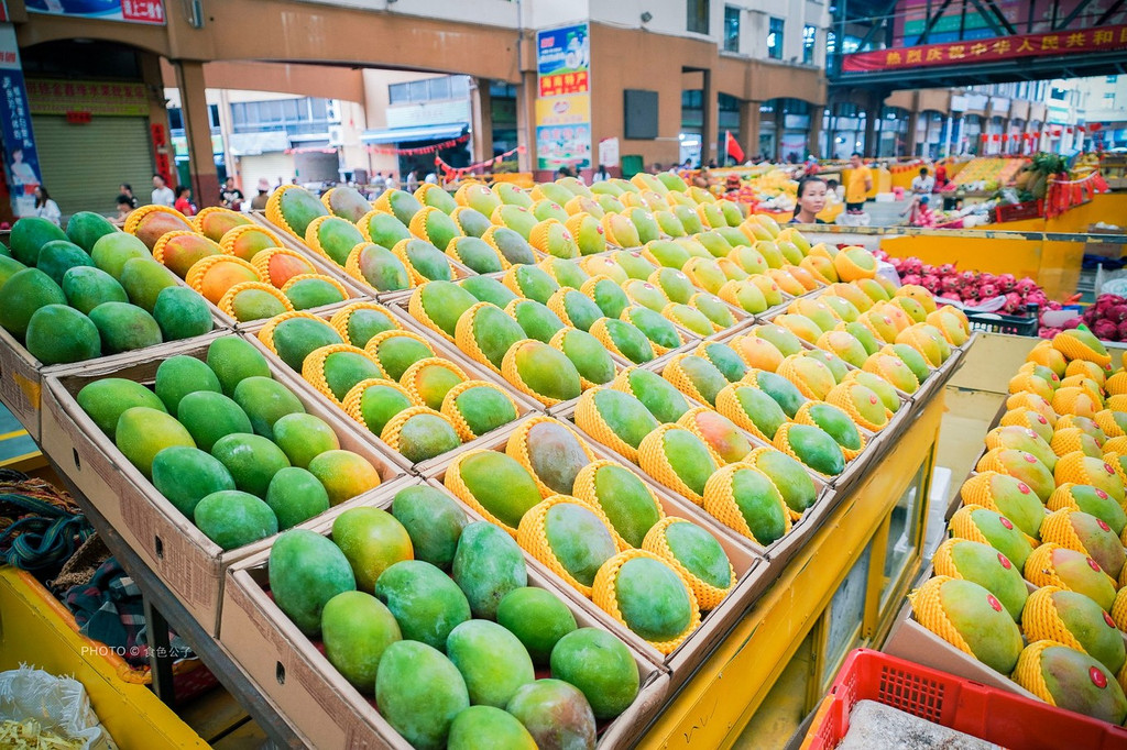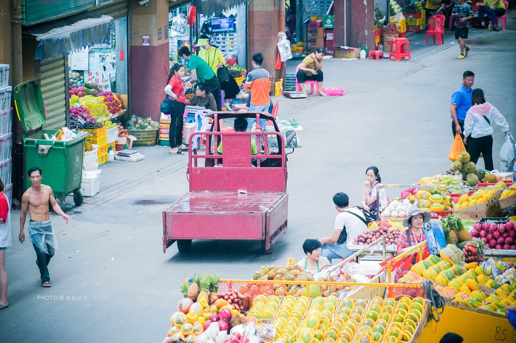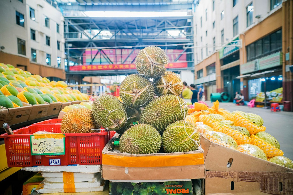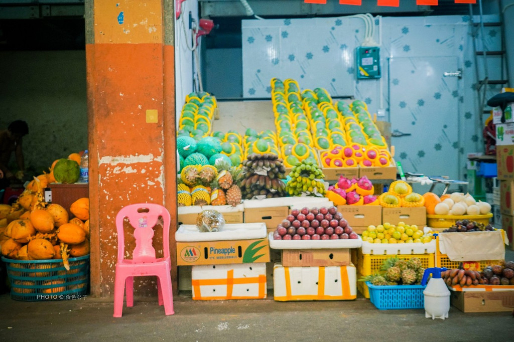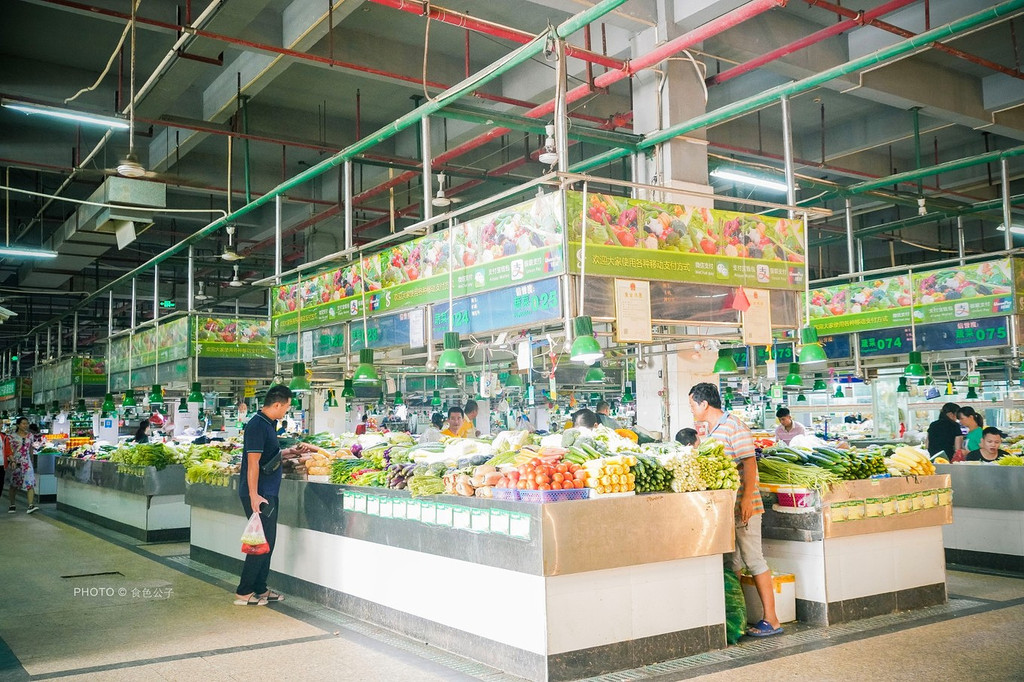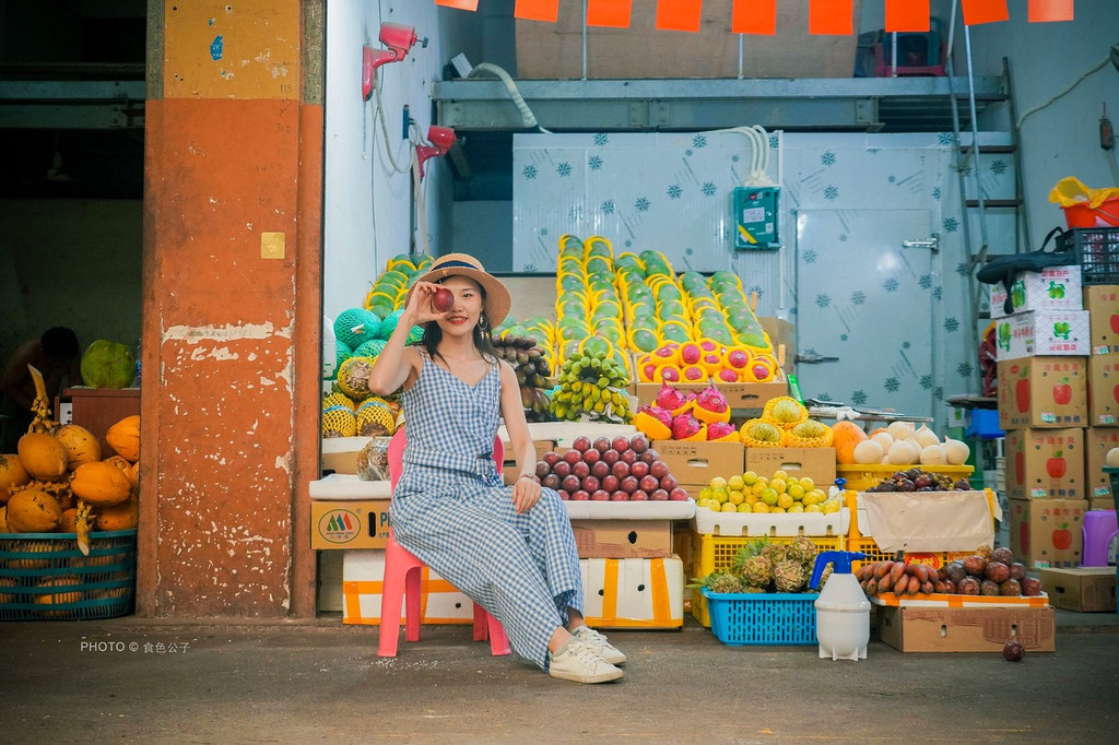 最初打算来吉阳区鸿港农贸市场,是因为这里热带水果“网红”打卡地,水果又多又便宜,作为一个吃货,怎么能错过!不过,现在的新鸿港农贸市场已从最初的菜场发展成为餐饮、咖啡馆、零售店等业态混合的“一站式”综合服务体,在里面有吃有喝有逛,是一个很不错的地方。来到这里,第一时间直奔水果摊位!随处可见的整齐排列的水果,店铺粉色的小凳子,来来往往的顾客,一切都是那么热闹,那么温暖,那么独具烟火气。芒果、菠萝、椰子、木瓜、香蕉…每一样都散发着诱人的甜香。这里是三亚最大的水果批发市场,走在里面,你会觉得熙熙攘攘目不暇接,当你走到高处往下看,你会发现,下面是密密麻麻摆放得整整齐齐的水果摊位。各种颜色的水果整齐摆放着,一个个小摊位一排排排列着,期间客人来来往往,非常热闹。这里的水果种类繁多价格便宜,单单是芒果就有水仙芒、苹果芒、贵妃芒、鹰嘴芒、凯特芒、澳洲芒、象牙芒、青芒等等,而且价格便宜,芒果最便宜的的菜3块钱一斤!如果你想买回家但是又不想自己拿,这里还可以提供快递服务,可谓是非常方便,所以在这里也能看到快递打包、运送车辆来来往往的繁忙景象。琳琅满目、色彩鲜艳的水果很适合拍照,在水果摊前或坐或站,拍出来都是温暖的、具有烟火气的照片。不过要注意,在水果摊前拍照要征得摊主同意再拍哦,而且拍的时候不要影响他们做生意。除了常见的热带水果,还有很多见所未见、闻所未闻的水果,在这里可谓是大长见识。这里的摊主一般都很好说话,买之前询问很多问题他们都会仔细解答,还会让顾客品尝水果。但是要注意,批发水果的摊位在下午5点半左右就收摊了,去买水果要早点,不然固定摊位的会比较贵。除了水果,这里还有各种海鲜、肉类和蔬菜档口,在这里可以买海鲜到附近的加工店加工品尝。一饭一蔬,生活百味也可以逛一逛了解当地的物价,看看当地人们生活的最真实样子。除了生鲜饰品,还有各类海货干货卖。在海鲜干味店里,各种各样的海货紧密摆放在一起,有鱼类、贝类、虾蟹类等等,质量优良价格合理,可以买一些回去,很不错。还有 海南 特有的鹧鸪茶一串串圆滚滚的挂在摊位前,鹧鸪茶具有清热解毒、消食利胆的功效,而且一大串才10块钱,相当便宜,可不要错过哦。【游玩Tips】
