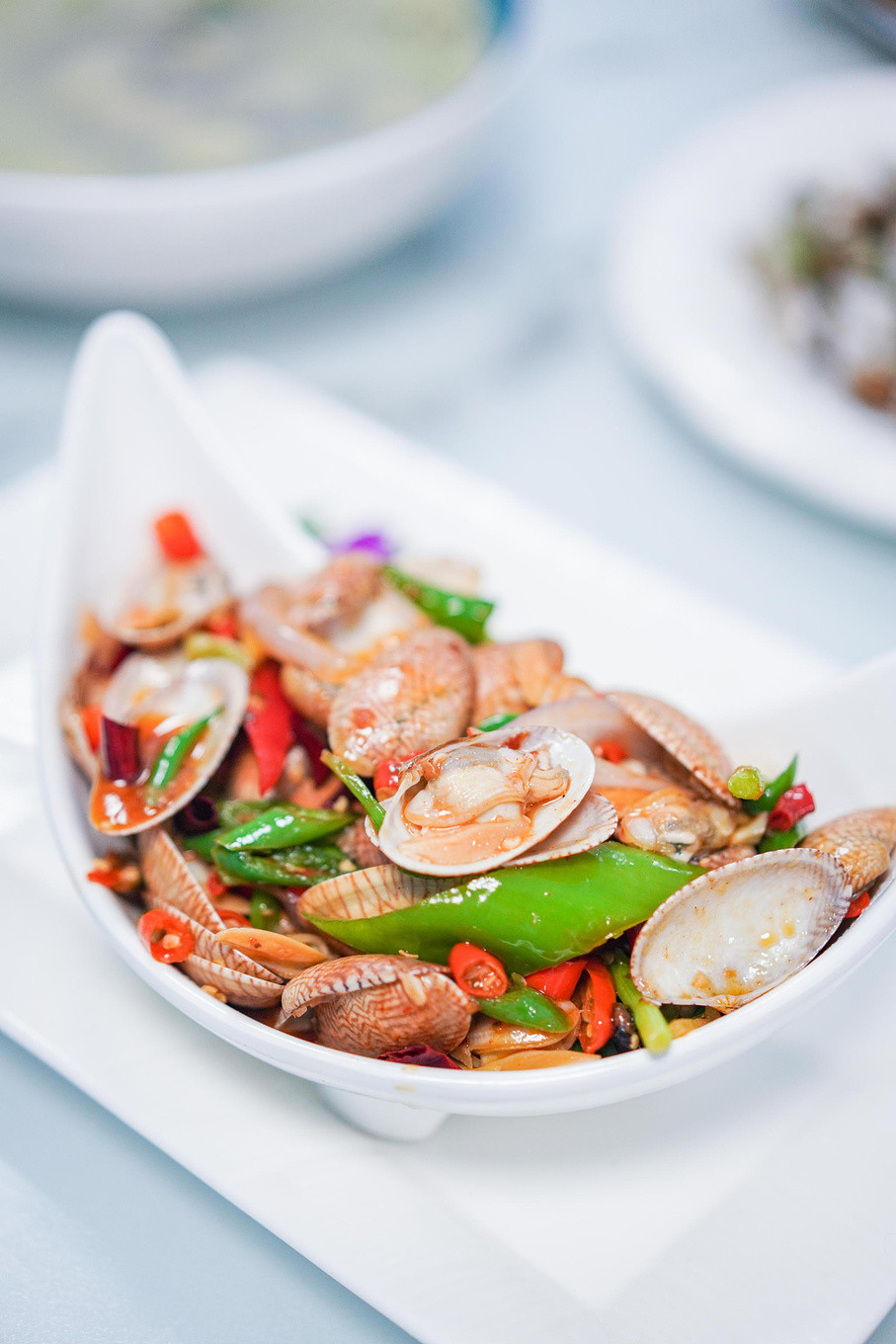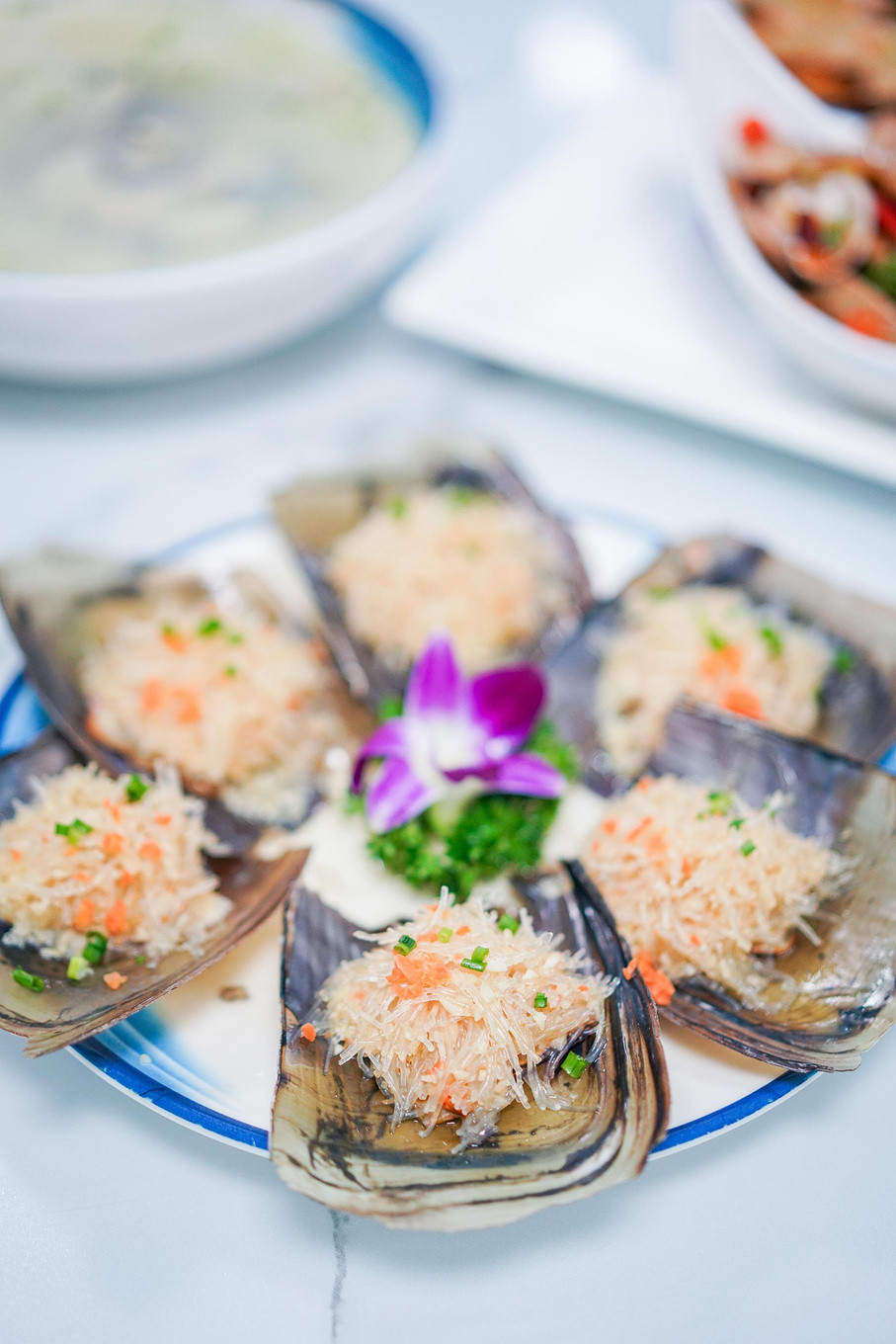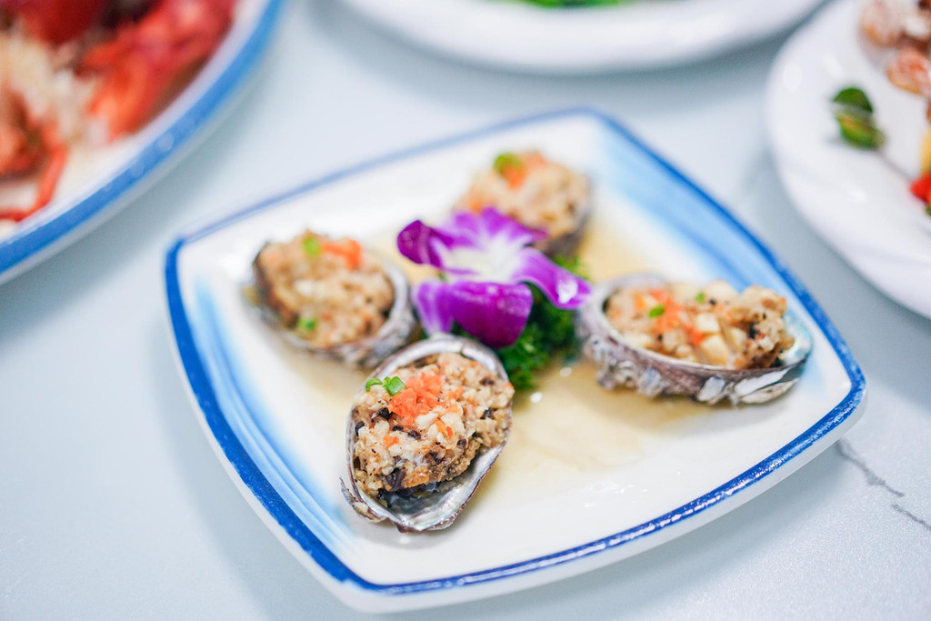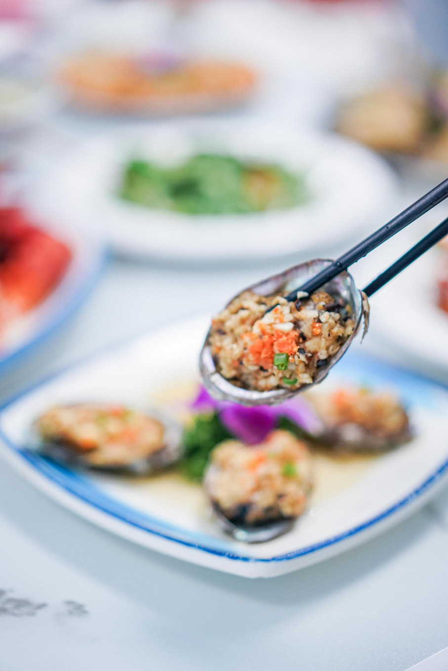 在店里就可以直接挑选鲜活的海鲜啦,在门口处就是海鲜池子,海鲜生猛又鲜活,而且品种很多,价格非常实惠,这里的海鲜加上加工费也比在市场里面买的更便宜, 非常靠谱!除了可以自己挑,还可以点套餐,分量足性价比高。在店员的帮助下,我们很快挑好了自己想要的海鲜,跟店员确认好加工方式,然后坐等上桌~蒜蓉粉丝开边蒸龙虾必吃!一上桌,鲜亮的色泽、扑鼻的香气,让人一看一闻就差点忍不住了!吃一口,虾肉细嫩清甜,味道鲜美,配上吸足了龙虾精华的粉丝,太好吃了!蒜蓉豆豉蒸鲍鱼,非常有创意的鲍鱼做法,味道很惊艳,鲍鱼个头很大,吃起来的肉质很细嫩,带着酱汁特有的蒜蓉和豆豉的辛香,味道很赞!香辣蟹,基本都是每次必点,蟹肉洁白饱满,非常入味,蟹肉特有的清甜在辣味的调节下,更显美味,好吃的忍不住把蟹壳也吮干净,哈哈哈辣炒芒果螺,我超爱这道菜。芒果螺是海南当地的叫法,在我们家那边叫做花甲辣炒后的芒果螺很入味,而且肉质肥美,我一个人就吃了好多。粉丝和扇贝类海鲜简直是绝配,粉丝蒸扇贝、粉丝蒸带子都是不错的选择,肉质Q弹鲜甜,粉丝吸足了海鲜的精华,每一口都是享受呀~椰子饭也是每次必点,他们家的椰子饭没有太多馅料,但是又香又甜又糯,带着椰子的纯天然清甜,入口香糯清甜。【觅食Tips】