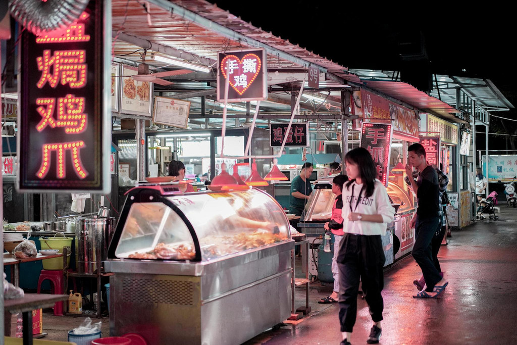 我很喜欢逛市场,无论是菜市场还是夜市,我觉得,市场是一个最能反映当地生活气息的一个地方,无论是生活习惯、特色产品,都可以在市场上找到。这次,我在三亚发现了林旺夜市,这是一个本地人才知道的夜市,游客很少,基本都是当地人,特别热闹特别接地气。夜幕降临,每个摊子前都热闹了起来,老板忙碌的身影,食客交谈的声音,食物烹调时的滋滋声,这一切声音交织在一起,格外热闹,也格外具有生活气息。在夜市上,到处充斥着烟火气、食物的香气,各色各样的小摊、各色各样的话语、各色各样的食物,眼花缭乱又热闹非凡。每个摊位前都有食客在等待着他们的美味,除了眼前的等待,而下一个摊子也在吸引着我们,有时是被小贩的叫喊声吸引,有时是被事物的香气所吸引。清补凉、水果炒冰是逛夜市必吃,清补凉料hin足,椰奶香味浓郁;炒冰水果可以自行选择哦。还有各类小吃:麻辣烫、臭豆腐、鸡蛋仔等等各种小吃,此刻只恨自己胃口太小!盐焗鸡是夜市人气王,摊子前时刻都有人在买!鸡爪、鸡翅、整鸡都有,可以自行选择,建议每样都试试。还有烧烤摊前也格外多人,吃烧烤的时候还可以和老板聊聊天。小吃夜市后方的大排档,牛杂煲、海南菜、糟粕醋火锅…各类海南特色菜和各地特色美食,可以根据自己喜好选择哦。现场基本座无虚席,一片人声鼎沸,这吵吵闹闹的正是最诱人的人间烟火气呀。一定要早点去哟,去晚了估计要的等位。除小吃,夜市上还有卖衣服的摊子,主要是一些沙滩主题的衣服,可以去淘一淘,说不定会有惊喜哦~夜市上很适合拍人像,在各种霓虹灯牌的映衬下,有一种上世纪80年代的感觉。【游玩Tips】