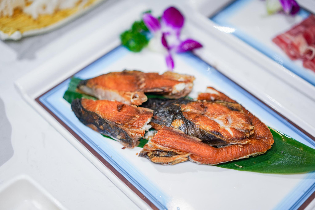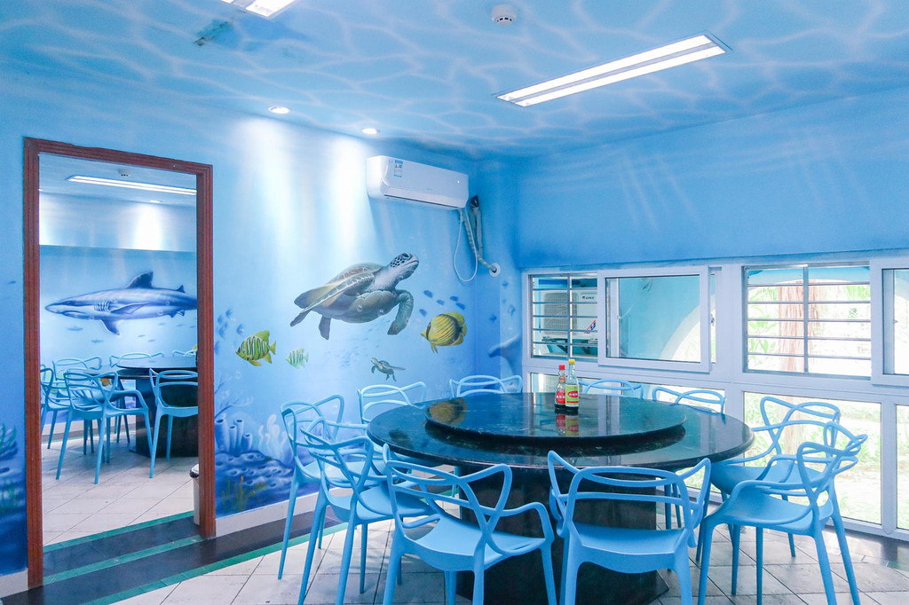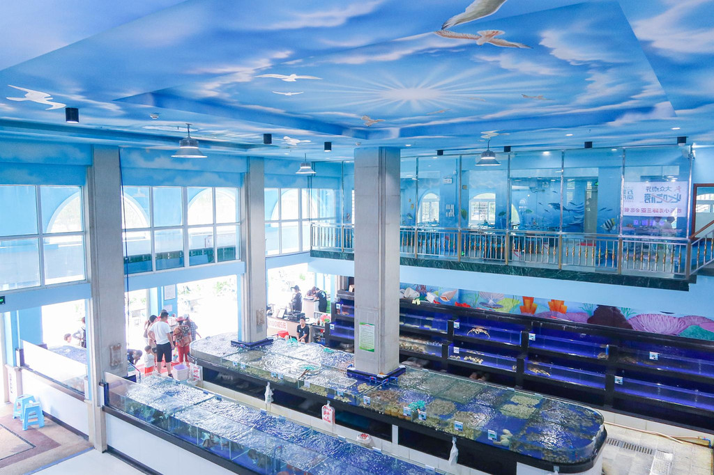 整家店很大,一楼中庭是海鲜池,可以选购自己喜欢的鲜活海鲜,价格透明、加工费明码标价,而且,在店里挑选海鲜,标价多少钱就是多少钱,不用额外在收取加工费。这家店还提供三亚湾周边五公里免费接送的,这个服务太赞了!一走进来,就像走进海底世界一般,里面还要海底世界的大幅绘画,海龟,珊瑚,美人鱼壁画,随处可见,好像身处海底世界一般。椒盐皮皮虾,个头很大,小海豚皮皮虾烹饪得外酥里嫩,外壳香香脆脆,虾肉肥美饱满,吃起来很是鲜甜紧。你吃过蒜蓉蒸大草虾吗?超级好吃!大草虾开边,然后加入蒜蓉上锅蒸,蒜蓉的辛香和虾肉的鲜甜融合在一起太美味了,而且开边之后的虾更加好剥开。辣炒珍宝蟹,超大只的珍宝蟹,蟹肉非常多,又多又饱满,辣炒后的蟹肉很入味,香辣中带着蟹肉的清甜,无敌好吃。辣炒花甲螺,这个花甲螺很大只,肉非常肥美饱满,带着辣椒的香味和辣味,一口一个,吃得非常过瘾~【觅食Tips】