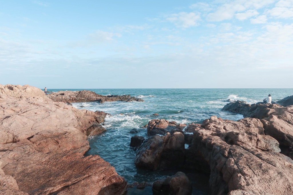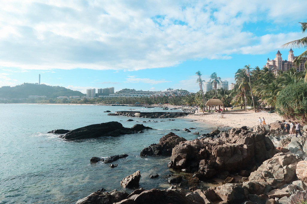 相比于三亚的熙熙攘攘,距离三亚一个小时车程的清水湾显然跟适合度假。海风,沙滩,椰林,三三两两的游人,整个清水湾格外闲适、安静,在这里超级适合发呆、度假。而清水湾也是世界上仅有的会唱歌的三个沙滩之一,中国仅此一个!非常特别的事,在清水湾同时观赏到清水、白沙、奇岭、怪石,整个弧形海岸,一半是沙滩,一半是礁岩,集合了海南东西两地截然不同的景观。而相比于沙滩椰林,我更爱的是那一半伫立海边的礁岩,那仿若世界尽头的地方。在海滩上往左边走,穿过一条崎岖的石头里小路,便来到了这一片礁石上。一整片黑黢黢的岩石屹立在海岸边,一直延伸至海里,暗色的礁石、蓝色的海水,还有汹涌的海浪,咋一眼望去,仿佛是世界的尽头。坐在礁石上,任阳光洒满全身,感受海风吹过发间时带来的微咸;或者站立在礁石上,看着海风携着海浪,拍在脚下的礁石上,绽出雪白的浪花,溅起无数的水珠。这一刻仿若世界尽头独遗自己的情形,内心感到无比平静。我真的超喜欢这里,在礁石上坐着看着潮来潮往,我能坐一天!山脚下、礁石上,有一些彩色的房子、石头房子、指路牌、秋千、餐桌等等,所以有很多适合拍照的点,能拍出不同风格的照片。这时候就可以尽情拍照啦,无论是在喜欢的场景下摆姿势,或者是在礁石上随便一站一立,都能拍出非常好看的照片。不过,千万记得,拍照时候要注意安全,不要走去危险的地方,要注意张涨潮时间哦。【游玩Tips】