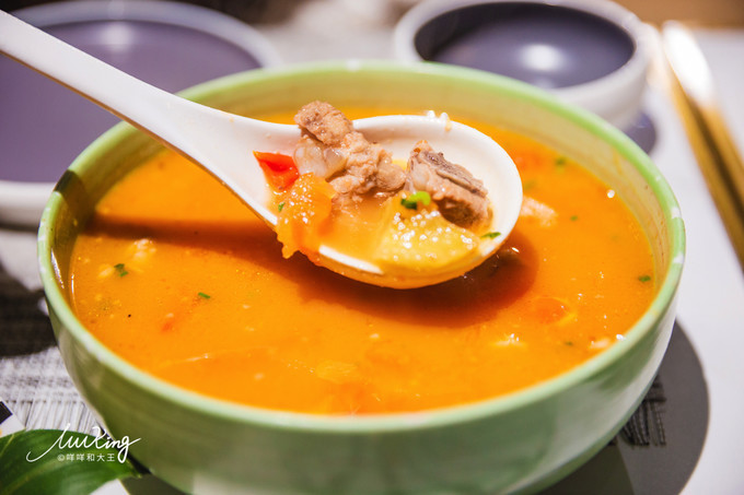 番茄土豆排骨汤:吃了很多肉肉喝一口番茄汤,味道酸甜可口。