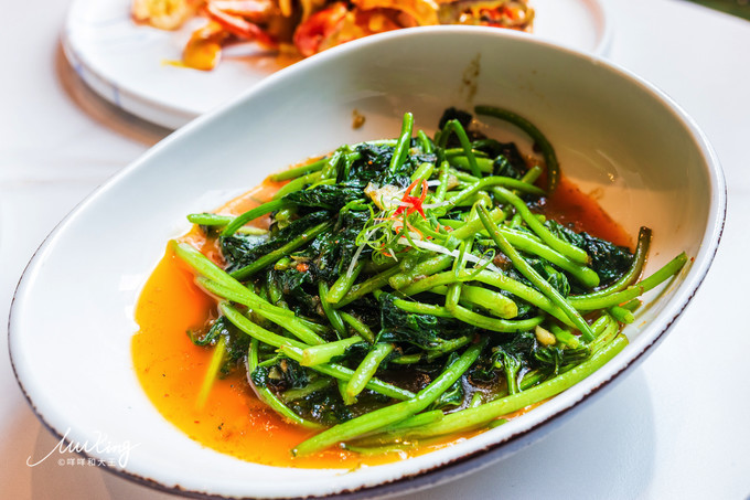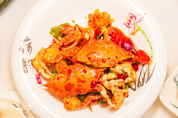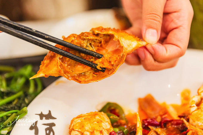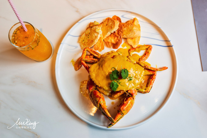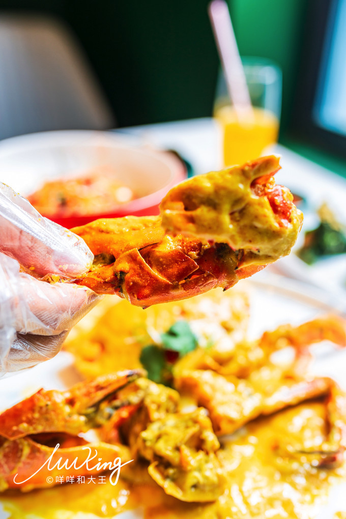 咸蛋黄炒蟹:他家必点的就是螃蟹了!螃蟹的做法有黑椒炒蟹、麻辣炒蟹、蛋黄炒蟹,可以根据自己喜欢的口味选择~由于喜欢咸蛋黄焗一切,所以选的蛋黄口味。贴心的在制作时就把蟹钳给砸开了,蟹肉肥而鲜美,和手一样大的蟹钳肉超级多,连小蟹腿都有肉!