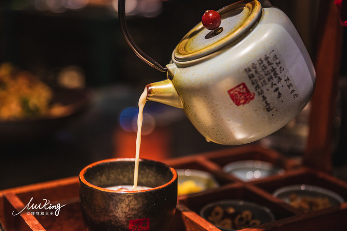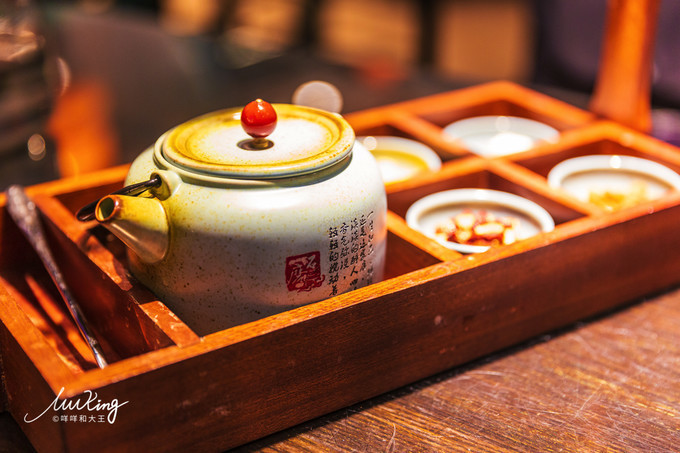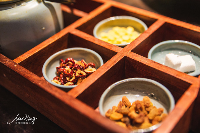 贴心的考虑到了有人喜甜有人不愿加糖,所以一壶原味豆浆搭配4个小配料(方糖、干果、谷粒脆、红枣片)可以自由选择~