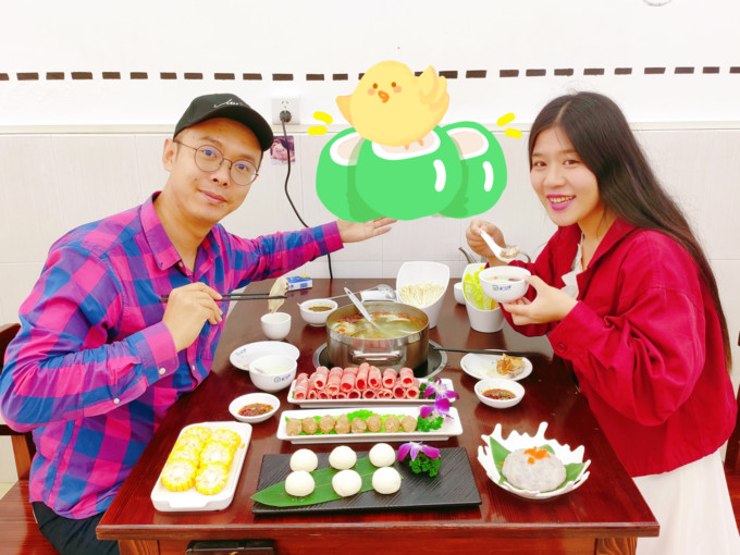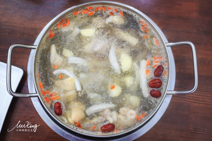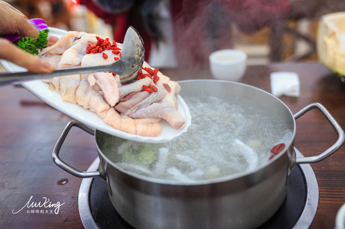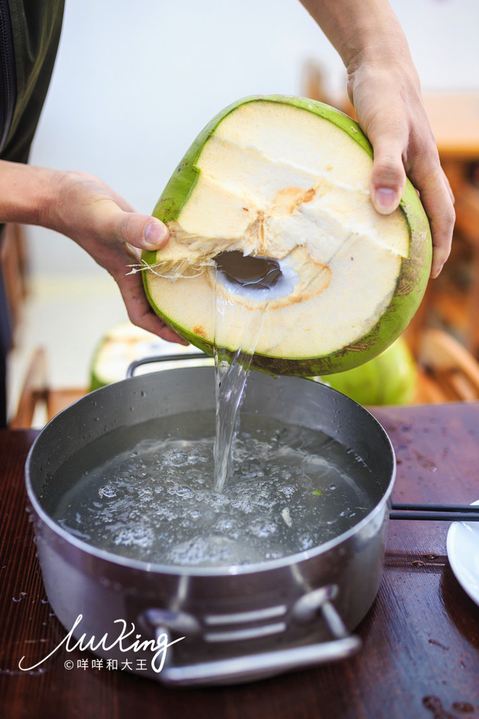 原味椰子鸡汤:三个巨大的椰子现场倒入锅中做锅底,一滴水都没加!!!加上椰肉和椰林走地鸡,煮完后的鸡汤清甜爽口,一点都不腻,我们两个人愣是连续喝了半锅椰汁鸡汤后才开始涮其他的!煮熟的美食再配上 海南 特色的蘸料,鲜嫩又美味。剩下的椰子我们还让老板给打开吃了椰肉,真的是一点都不浪费~