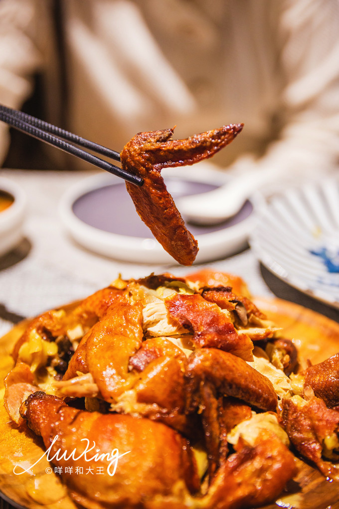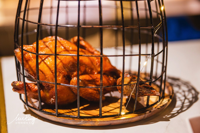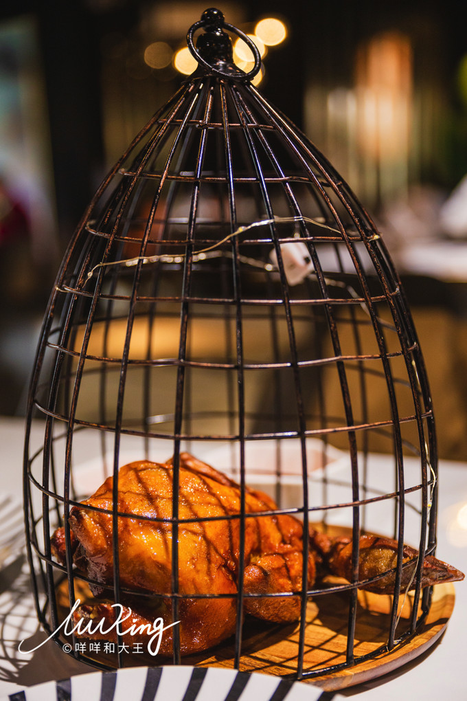 地狱脆皮 文昌 鸡:被关在笼子里的 文昌 鸡,外酥里嫩,鲜美多汁,不愧等到最后才吃到的压轴菜。